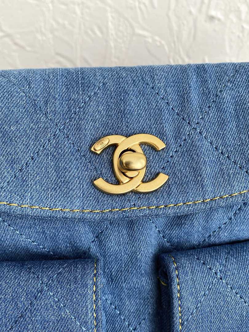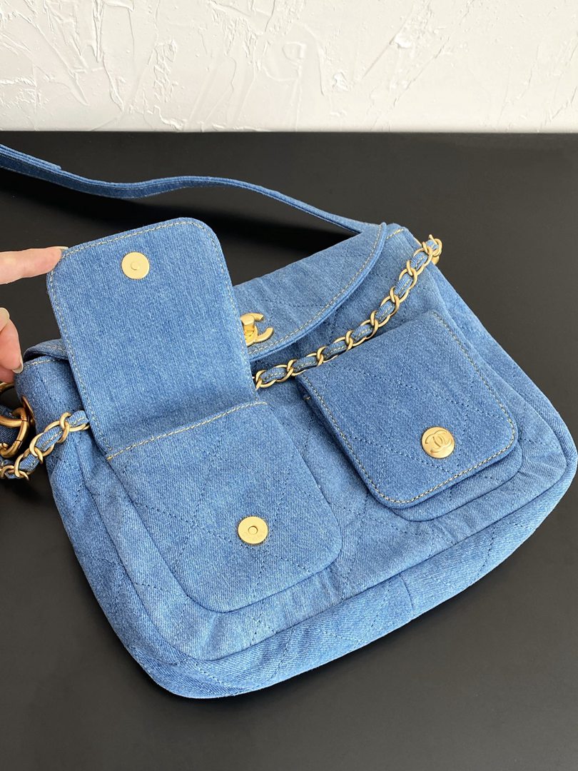 chanel 25p Double Pocket hobo bag blue Denim Quilted gold hardware