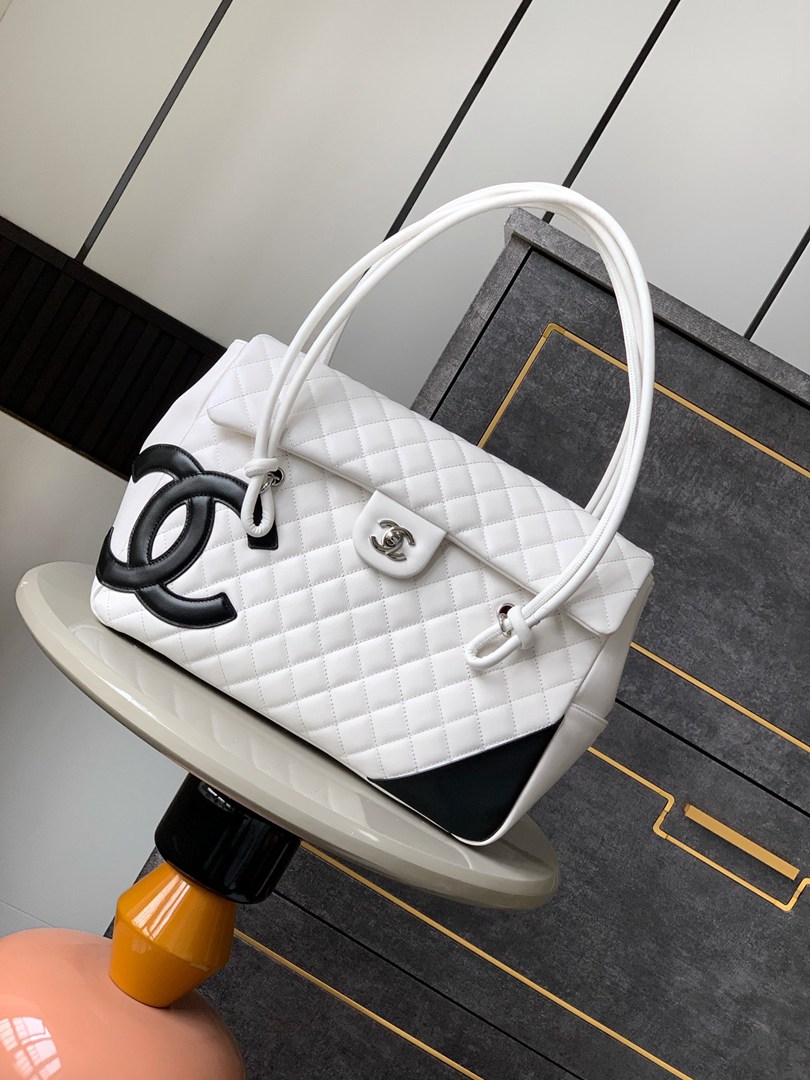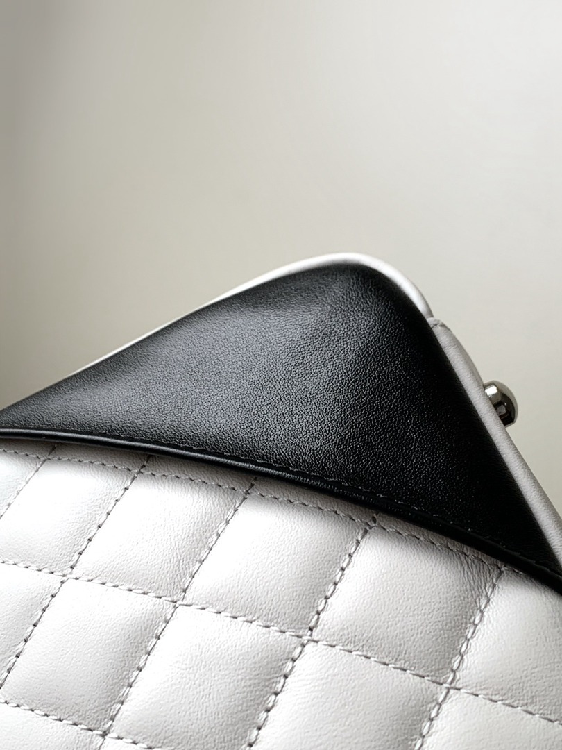 chanel cambon airport bag white&black cc shiny lambskin sliver hardware