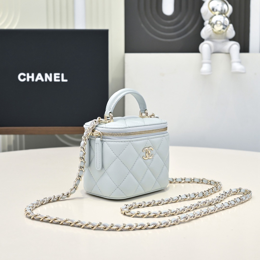 chanel mini vanity case bag light blue shiny lambskin gold hardware