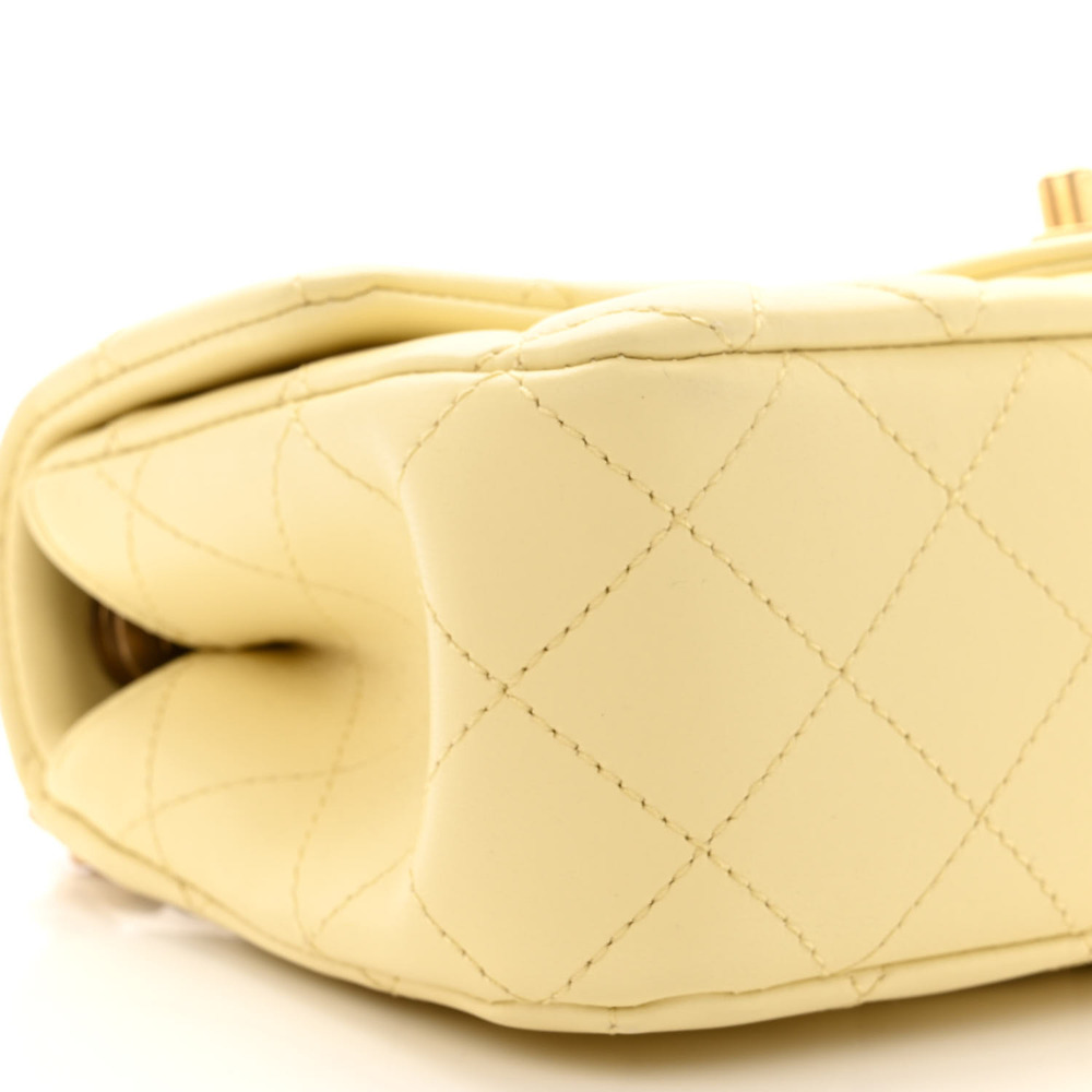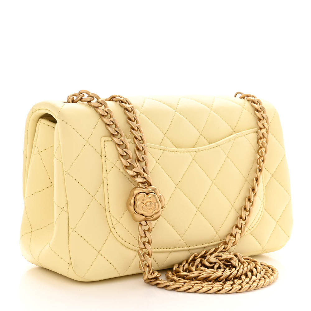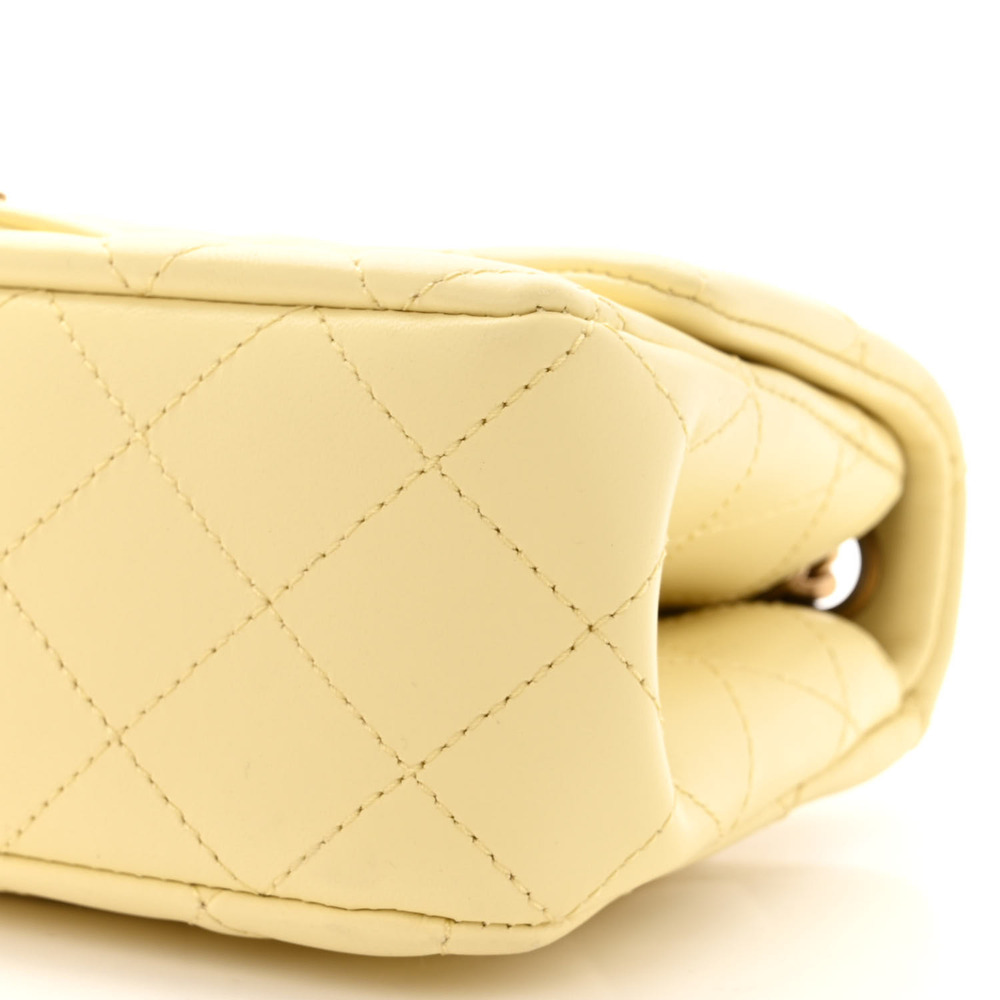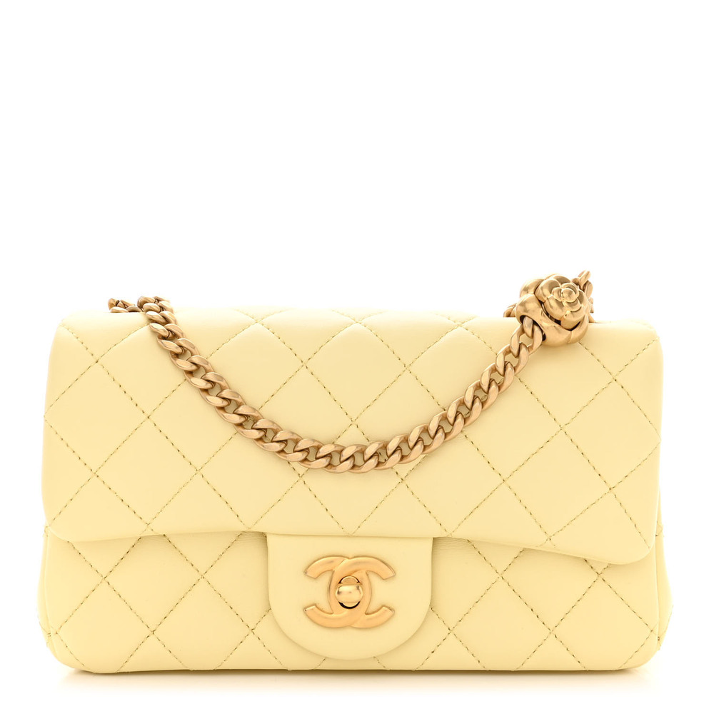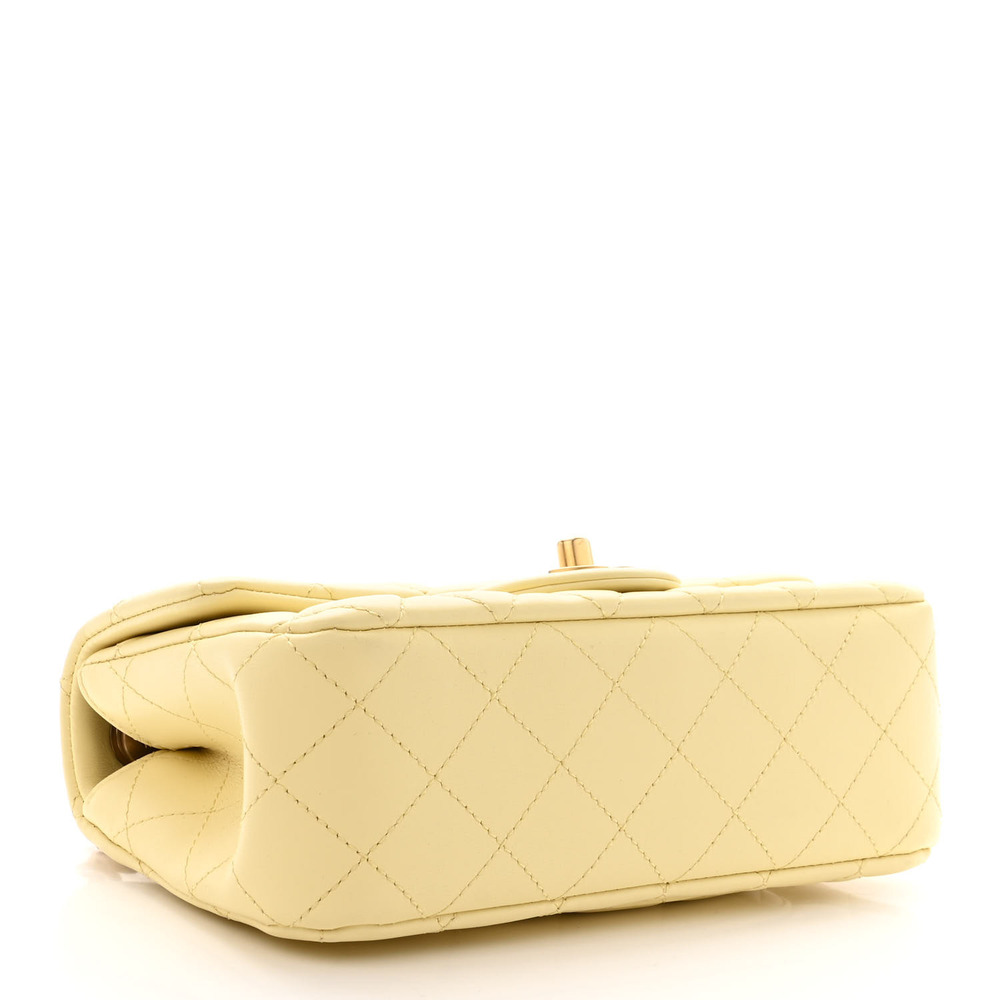 CHANEL Lambskin Quilted Mini Rectangular Flap Yellow