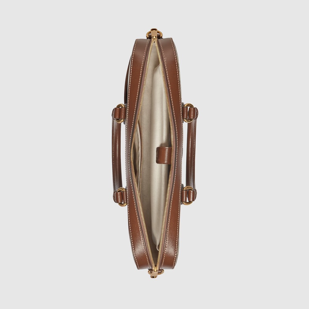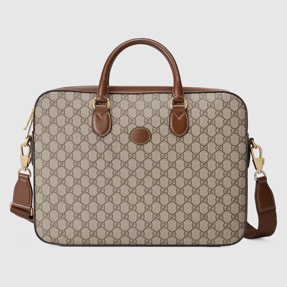 The Interlocking G has remained one of the most symbolic codes of the House since its introduction. The distinguishing emblem appears as a leather detail atop this business case. Completing the design’s logo feel, the style is crafted from monogram canvas.
