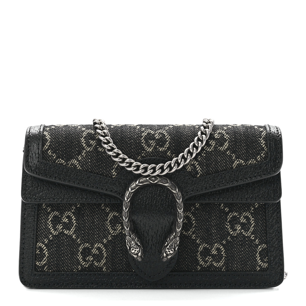 During the Cruise 2023 Gucci Cosmogonie fashion show, new constellations of House codes were presented. The now recognizable tiger head closure continues to decorate new iterations of the Dionysus handbag. Here, the small structured shape is juxtaposed by a bold Web strap embellished with studs that spell out Gucci.