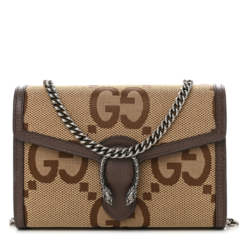 During the Cruise 2023 Gucci Cosmogonie fashion show, new constellations of House codes were presented. The now recognizable tiger head closure continues to decorate new iterations of the Dionysus handbag. Here, the small structured shape is juxtaposed by a bold Web strap embellished with studs that spell out Gucci.