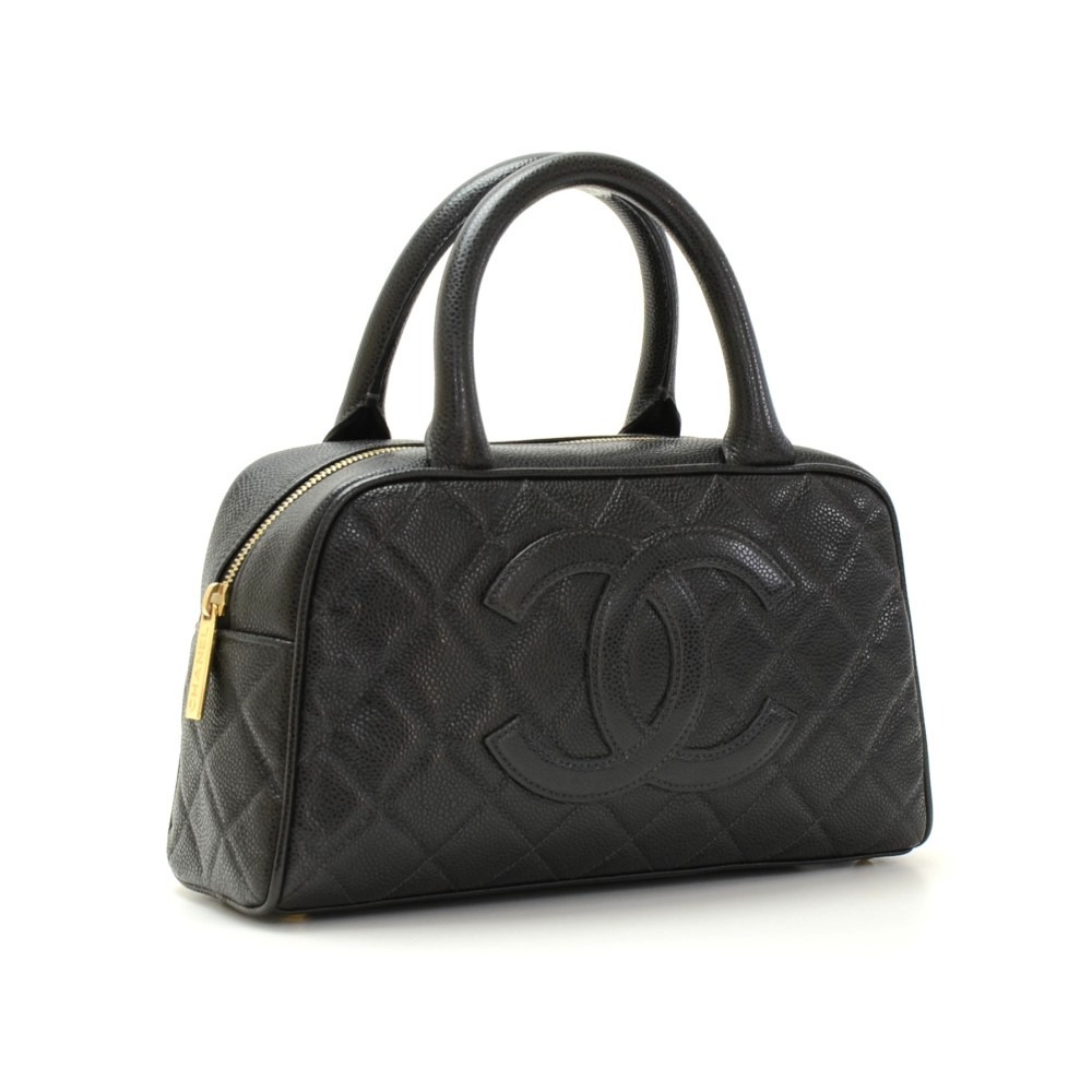 CHANEL Quilted Caviar Bowler small Black