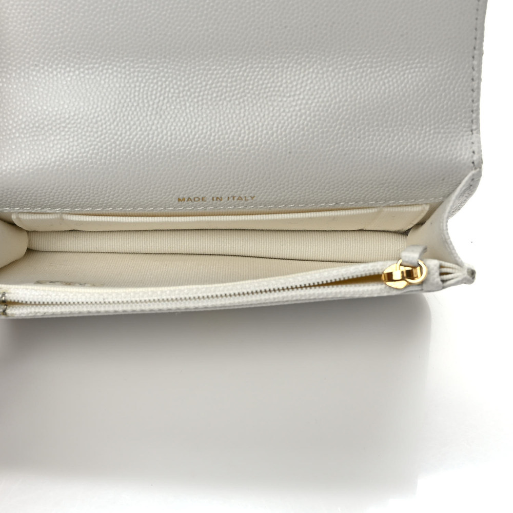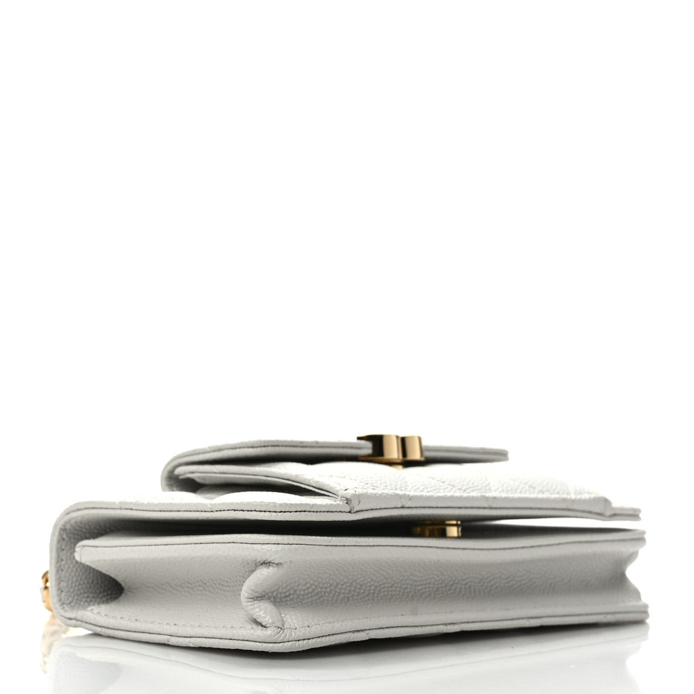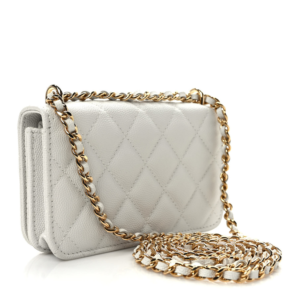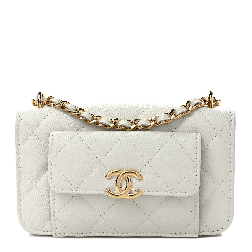 CHANEL Caviar Quilted Pocket Twins Clutch With Chain White