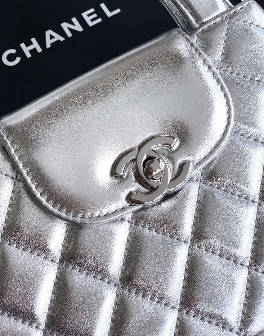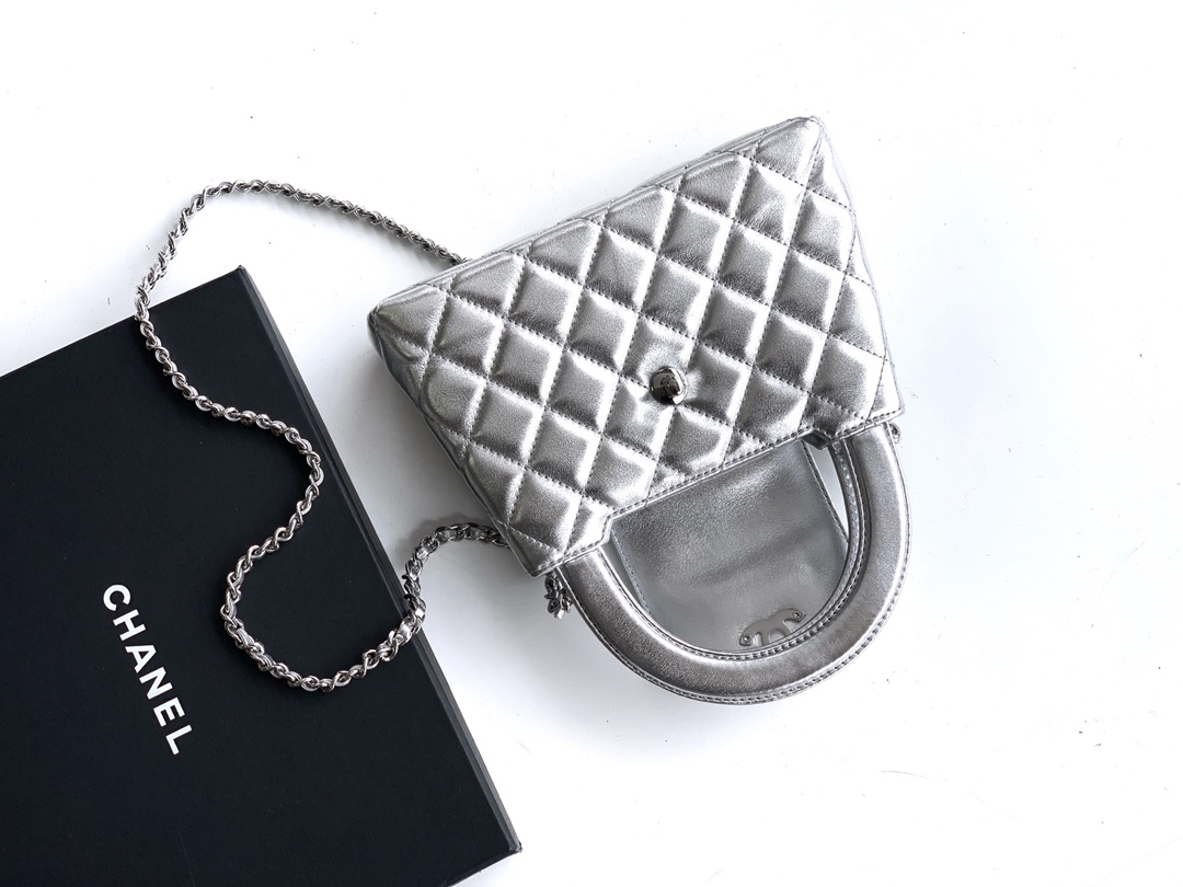 chanel 25a Kelly Nano Bag sliver shiny lambskin sliver hardware