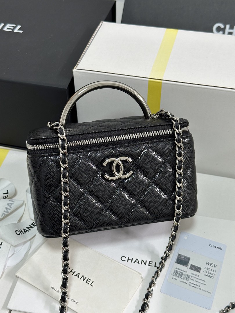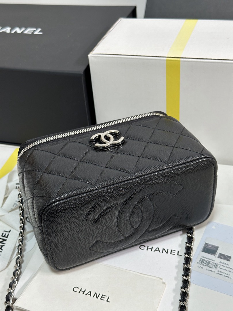 chanel 25p Vanity Case bag black caviar calfskin sliver hardware