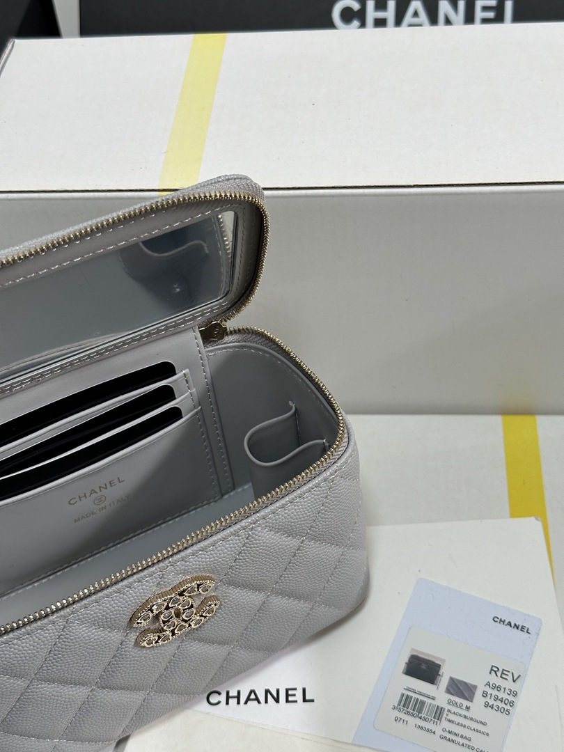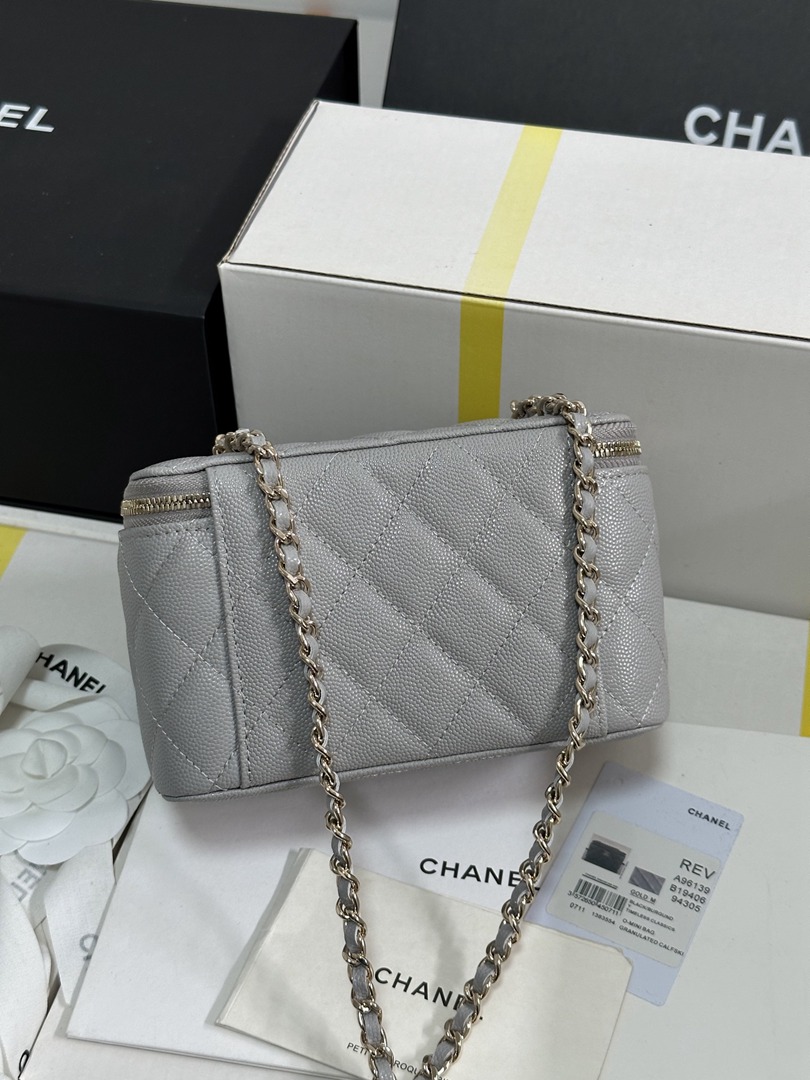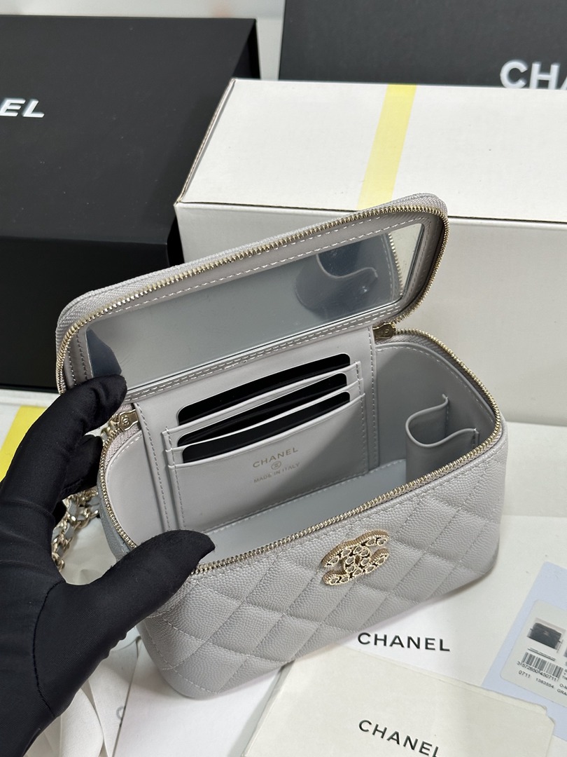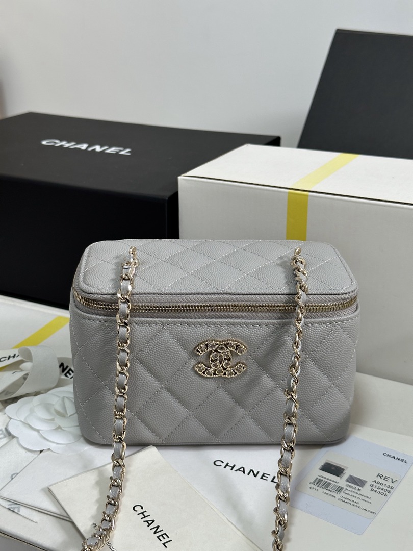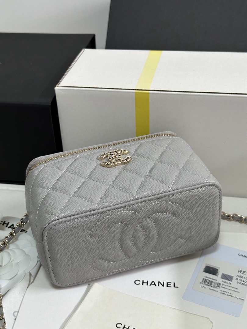 chanel 25p Vanity Case Heart rhinestones bag grey caviar calfskin gold hardware small