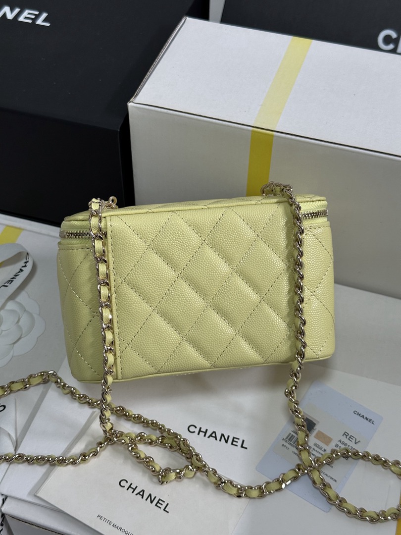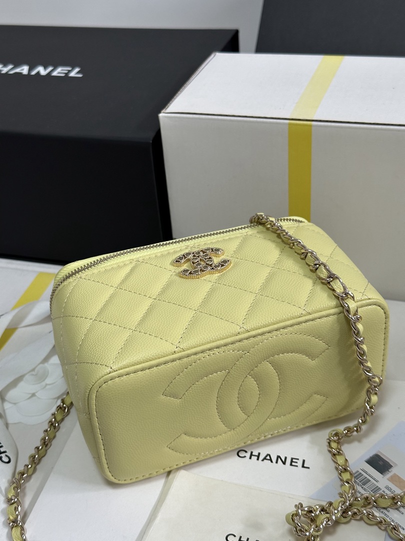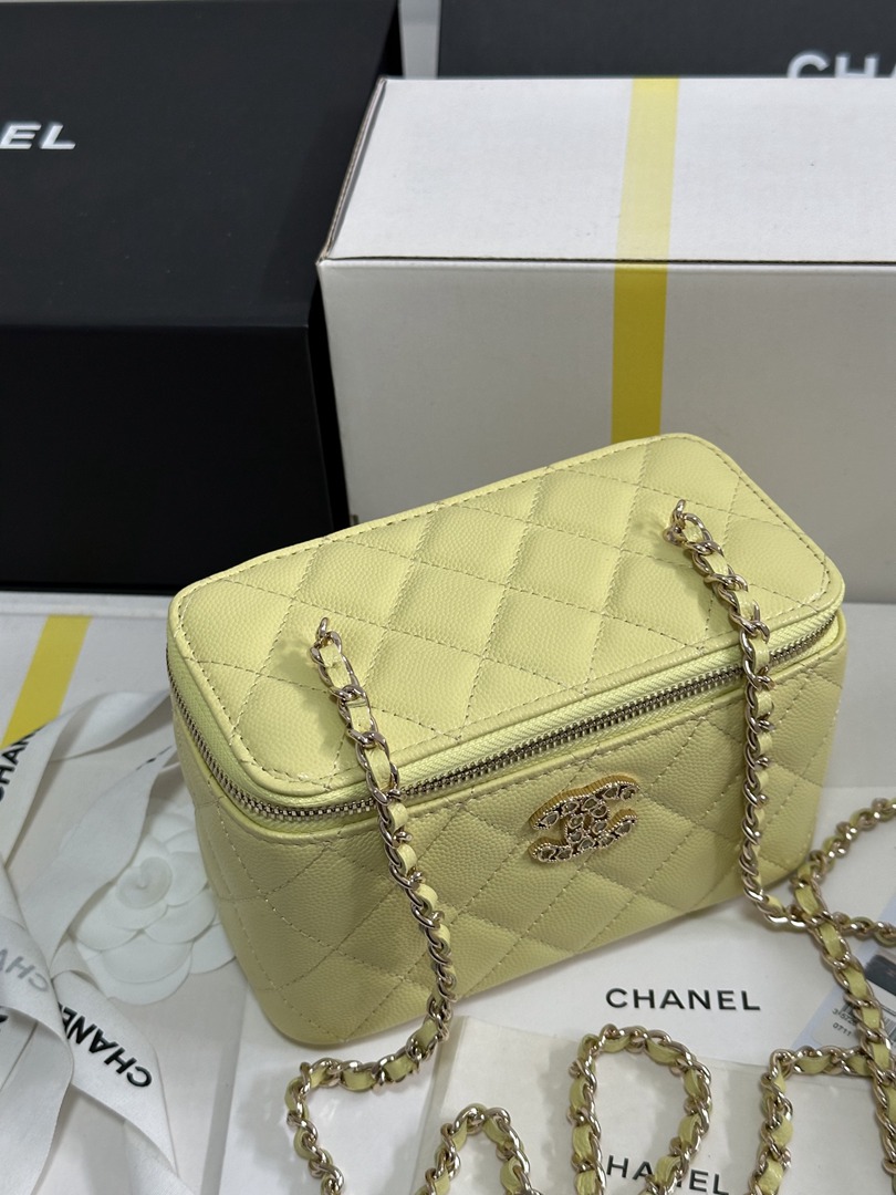 chanel 25p Vanity Case Heart rhinestones bag light yellow caviar calfskin gold hardware small