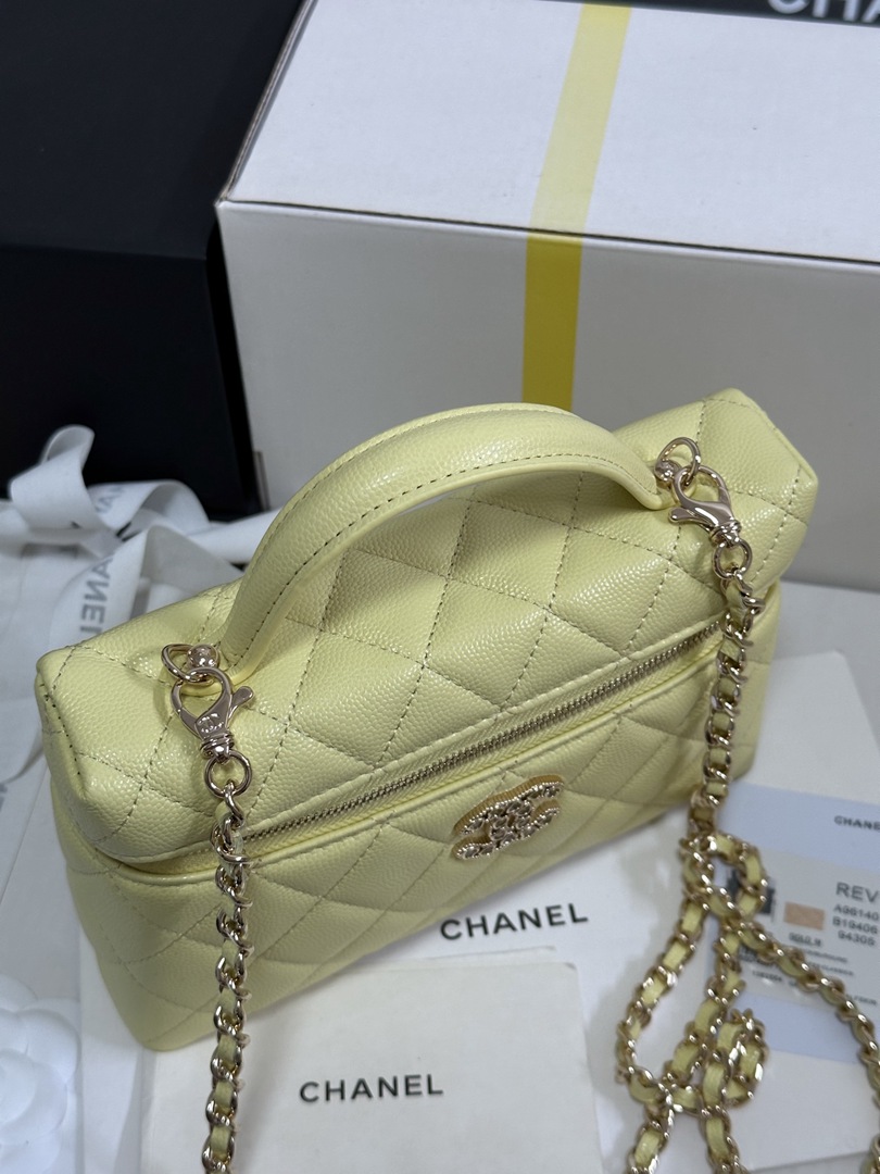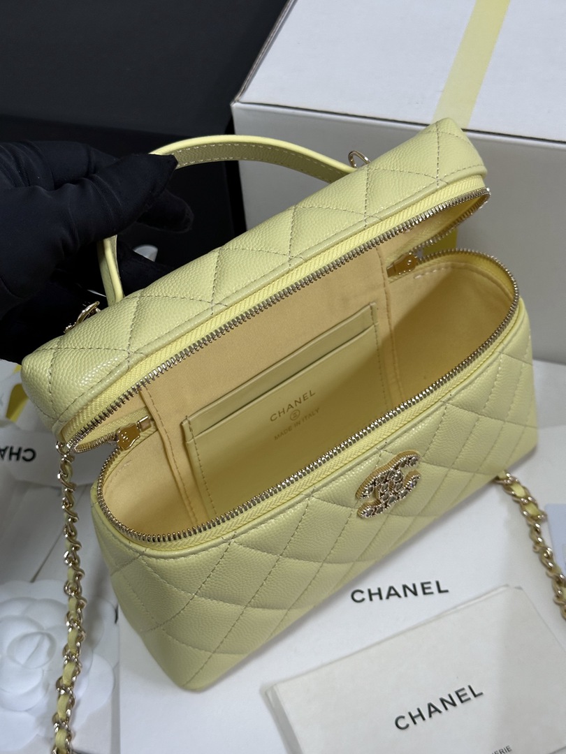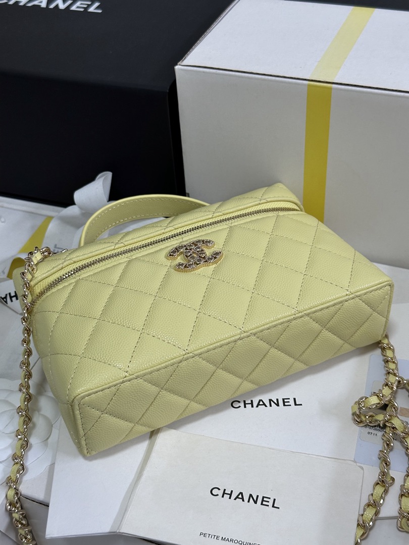 chanel 25p Vanity Case Heart rhinestones bag light yellow caviar calfskin gold hardware