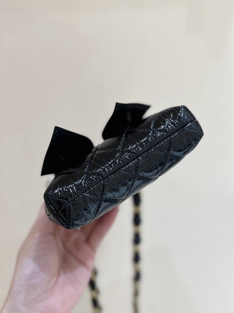 chanel 24a Bow Clip bag black shiny lambskin gold hardware