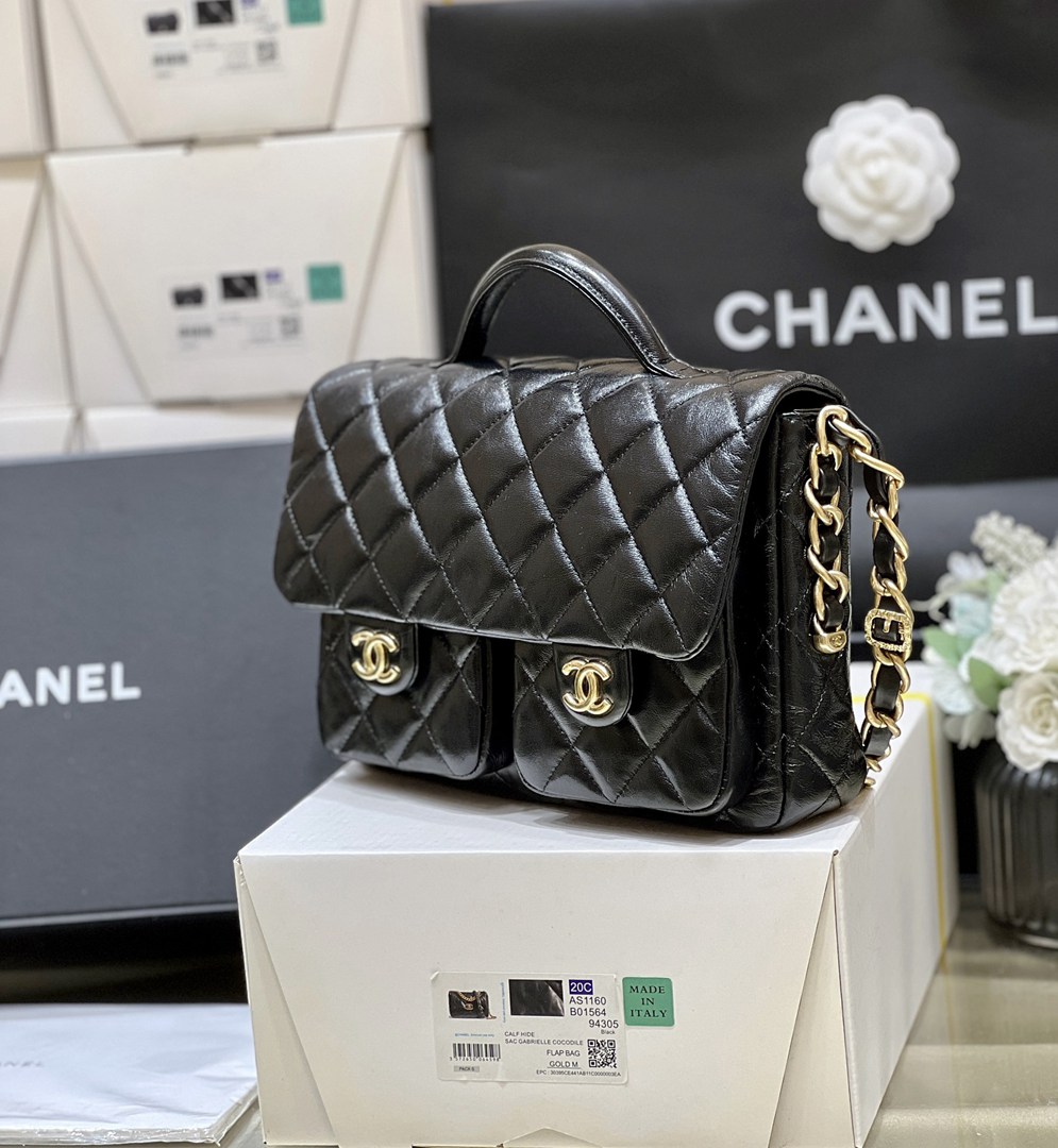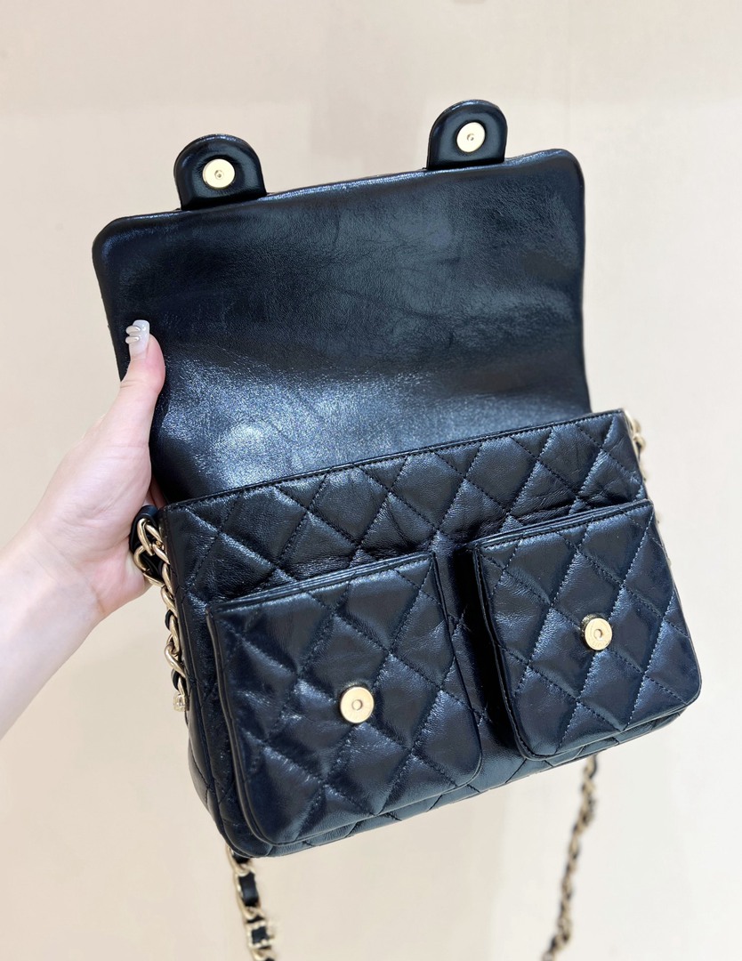 chanel 24a vintage messenger bag black shiny lambskin gold hardware