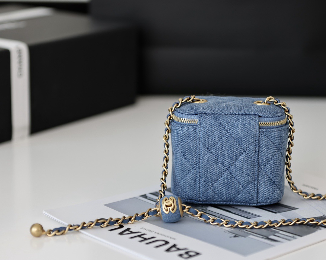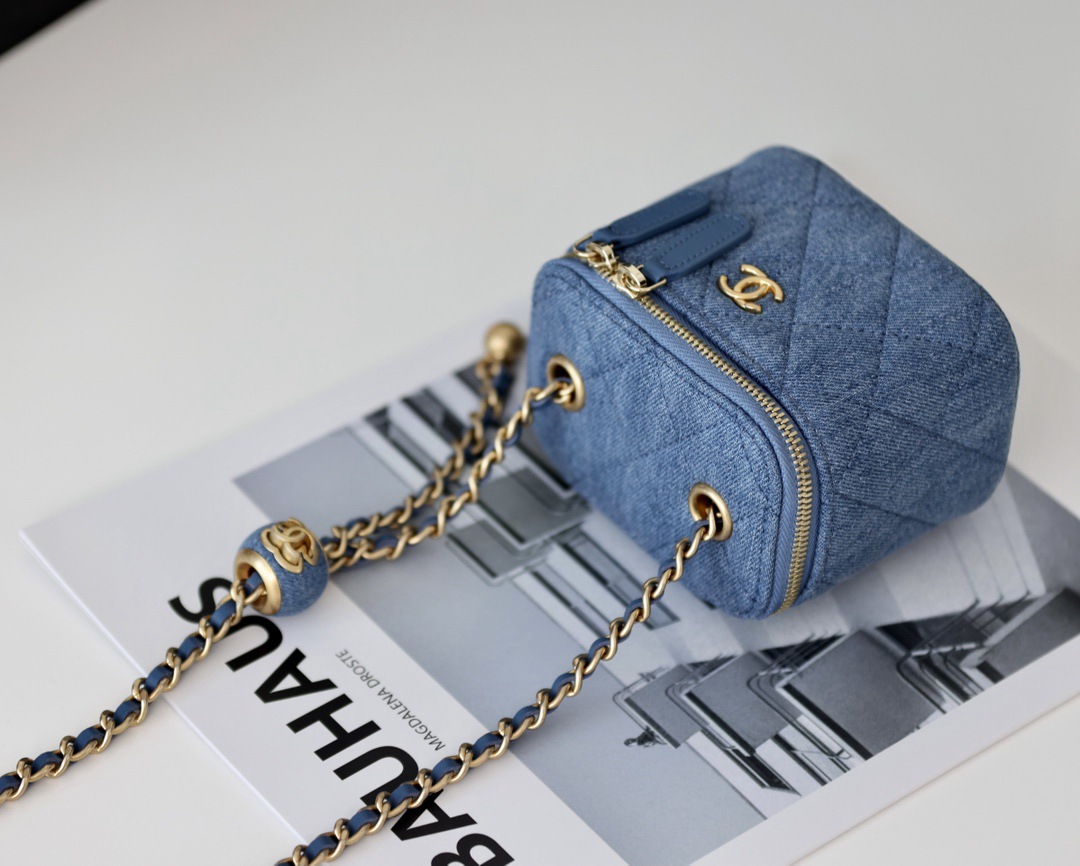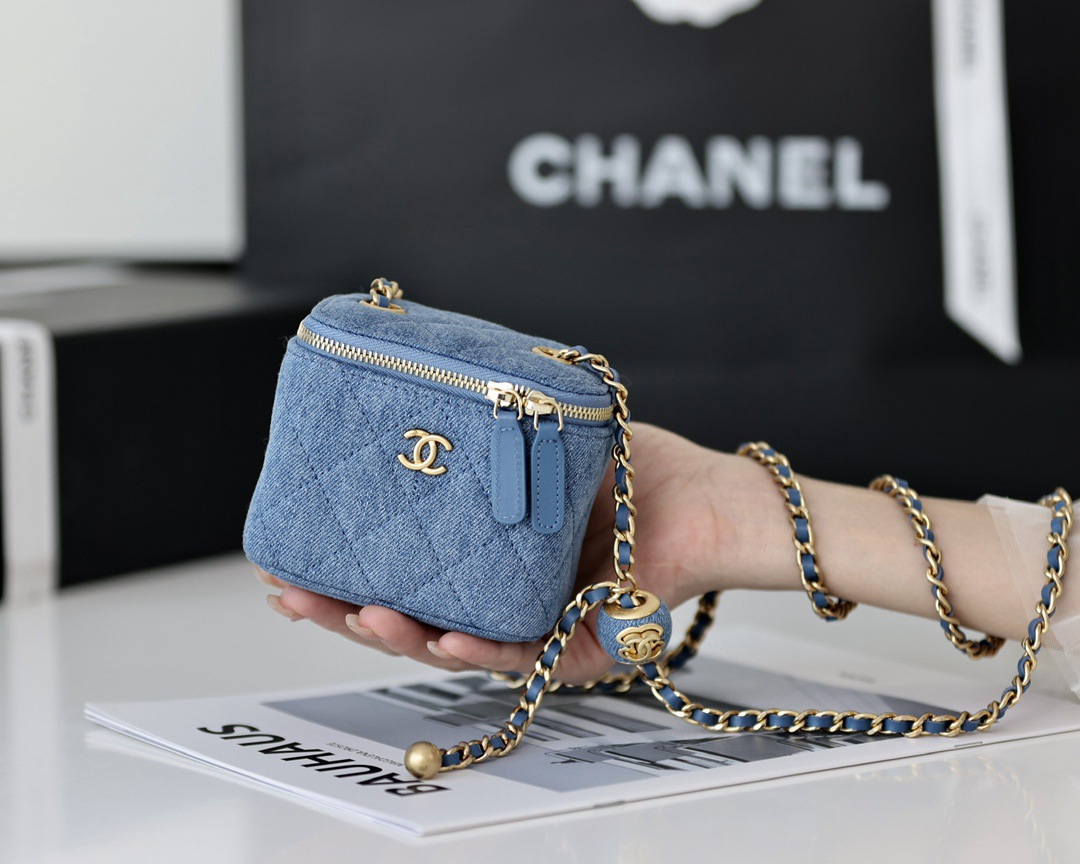 Chanel 22c Vanity Case Golden Ball bag blue denim Gold Hardware