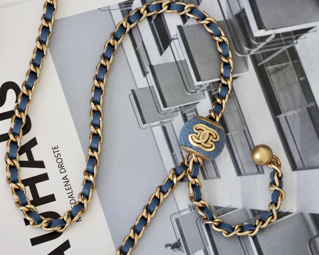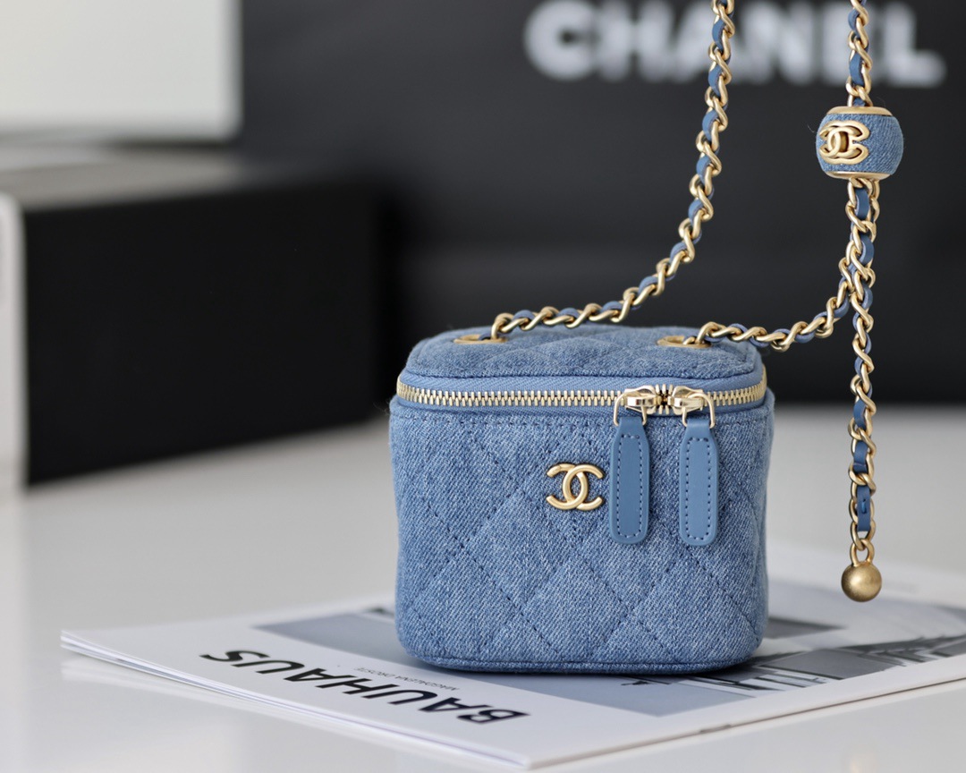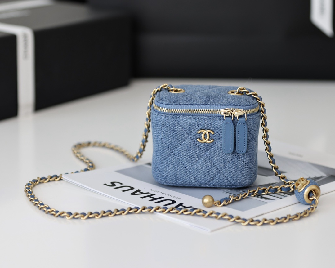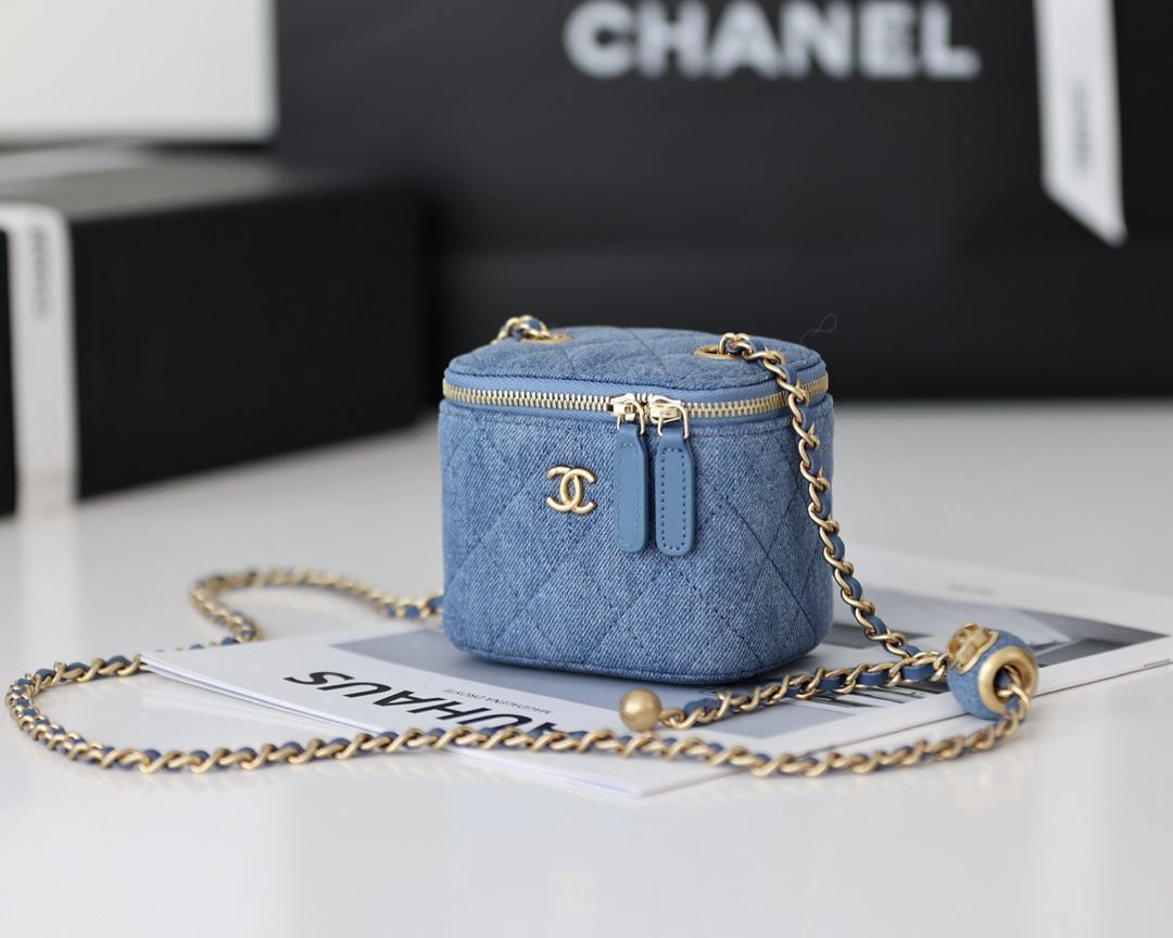 Chanel 22c Vanity Case Golden Ball bag blue denim Gold Hardware