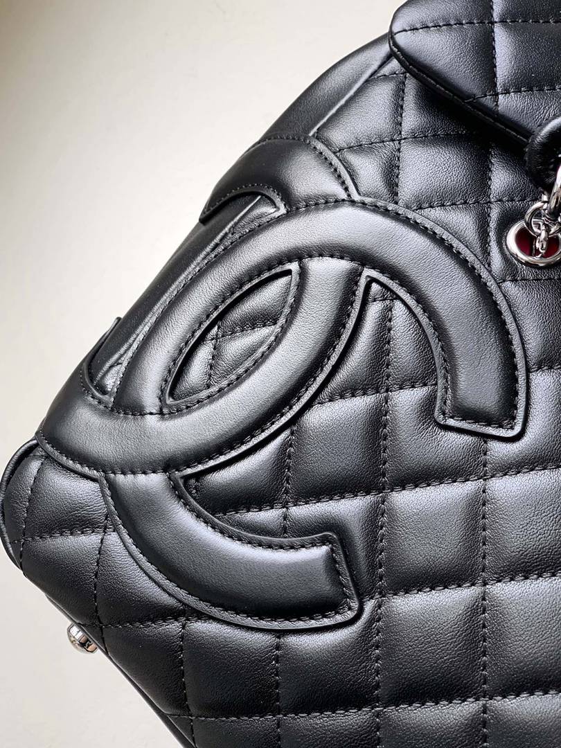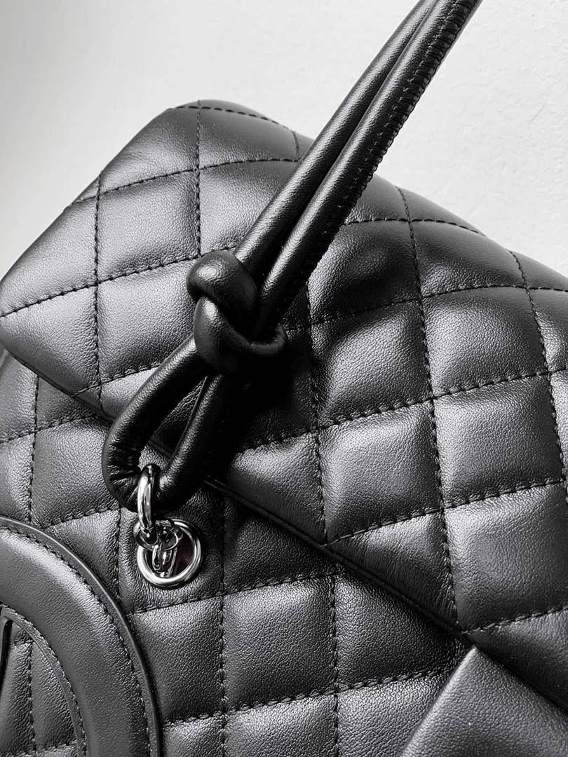 chanel cambon airport bag black shiny lambskin sliver hardware