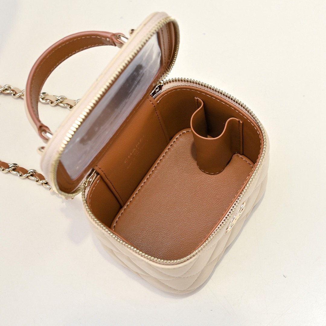 chanel mini vanity case bag apricot shiny lambskin gold hardware