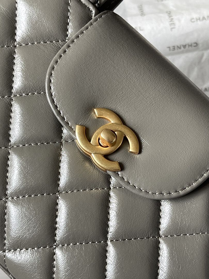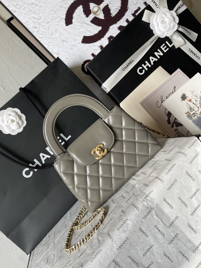 chanel 23k kelly bag light grey shiny lambskin gold hardware
