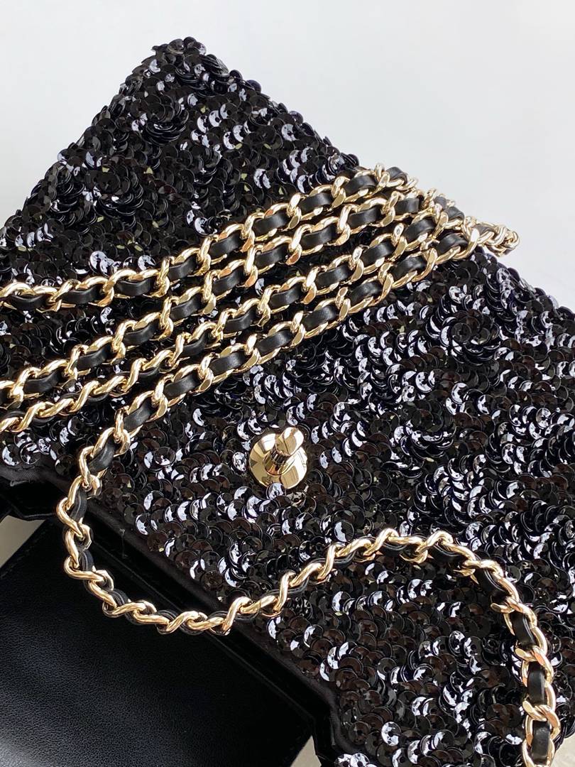 chanel Kelly bag black sequins gold hardware