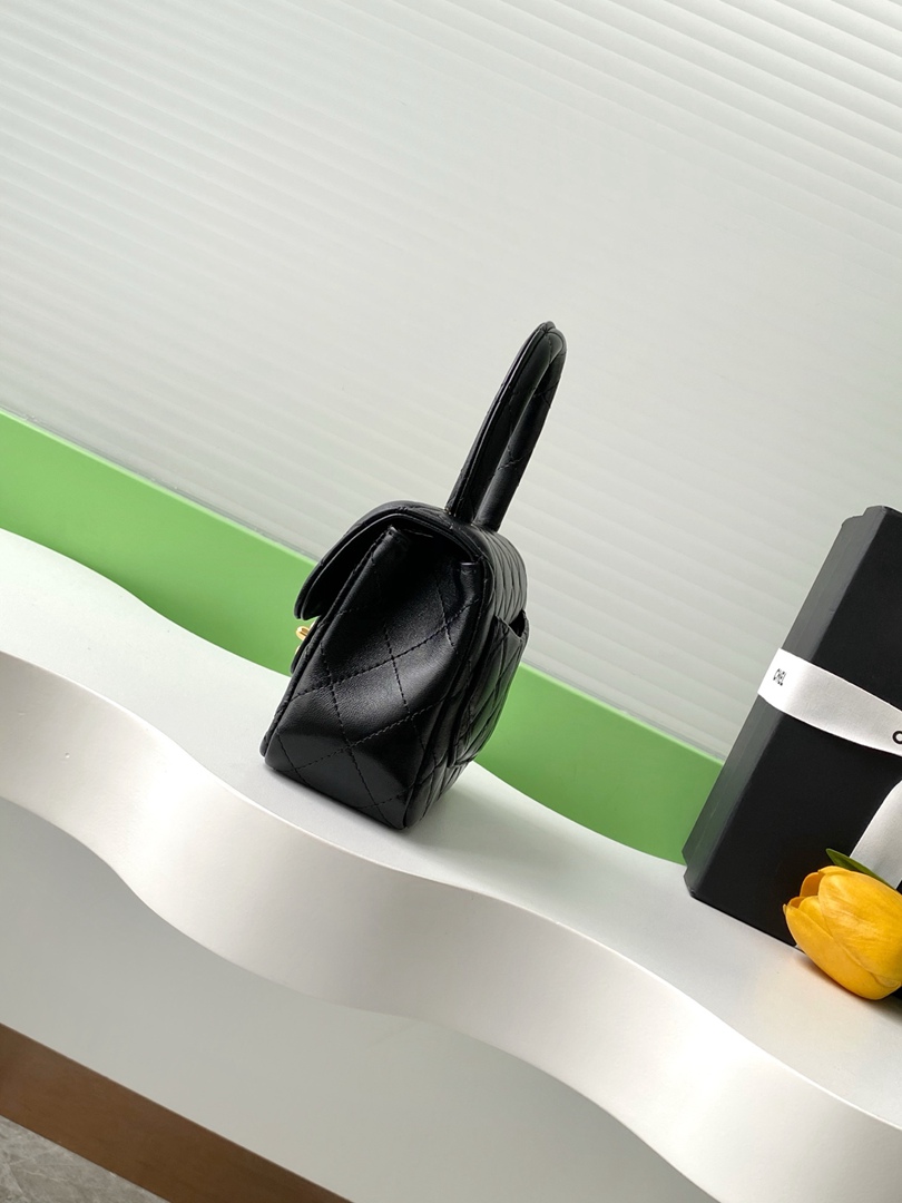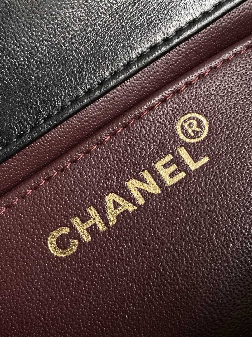 chanel Parent & Child Top Handle Bag black shiny lambskin gold hardware small