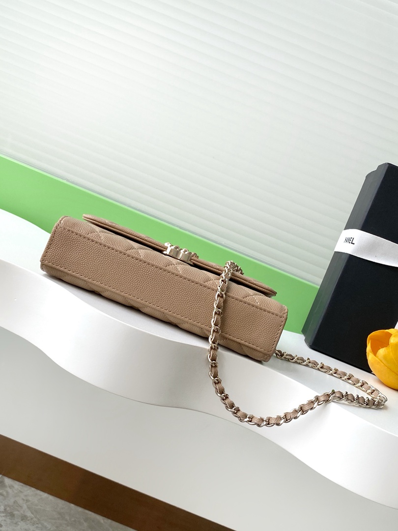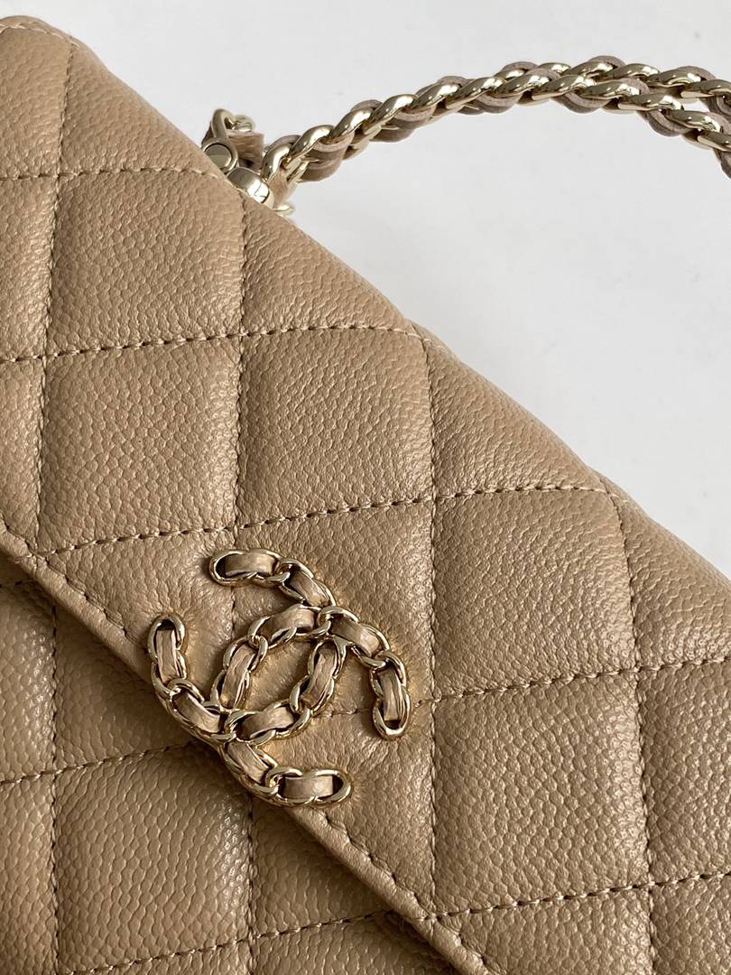 chanel 25a Cross handle horizontal kelly bag lignt apricot grained calfskin sliver hardware