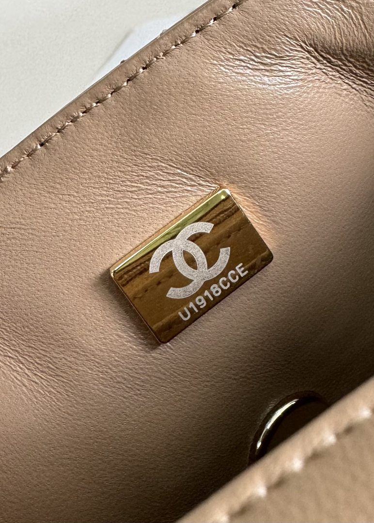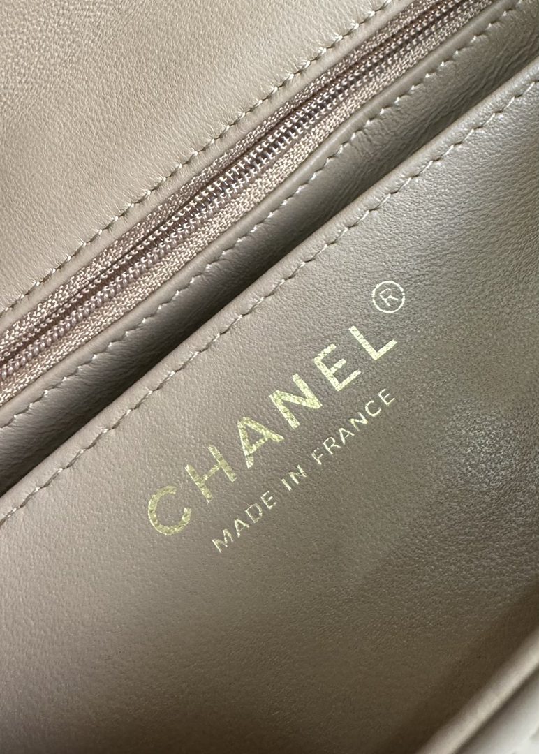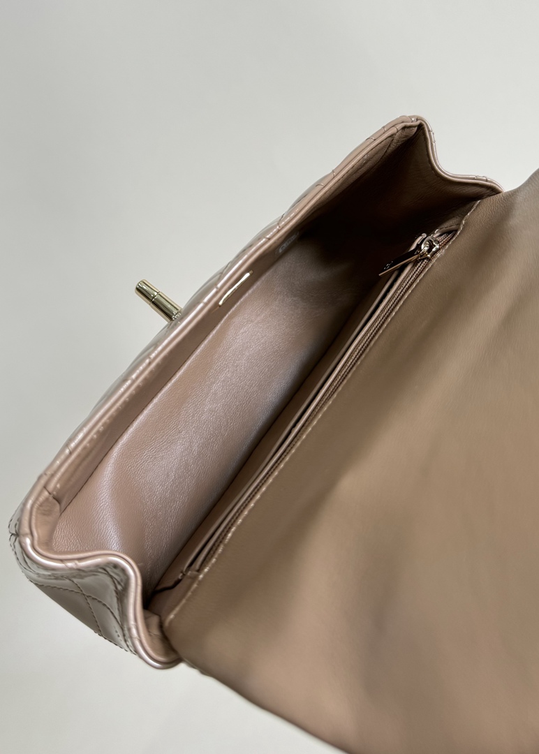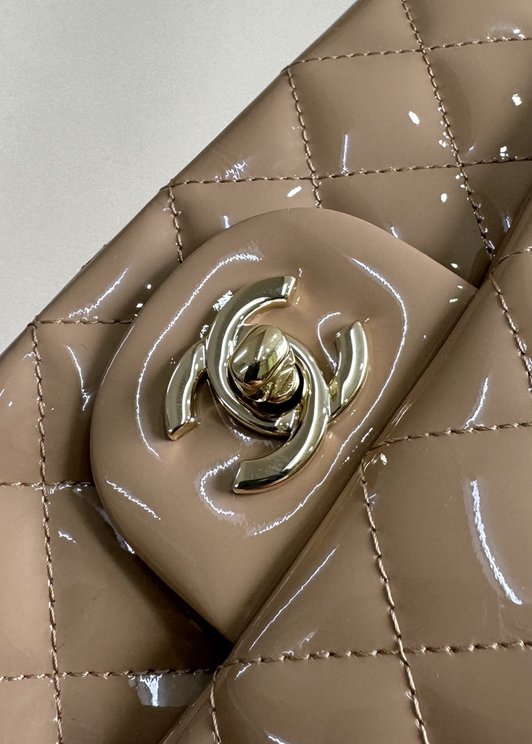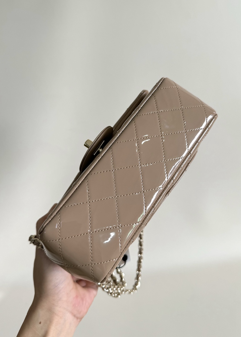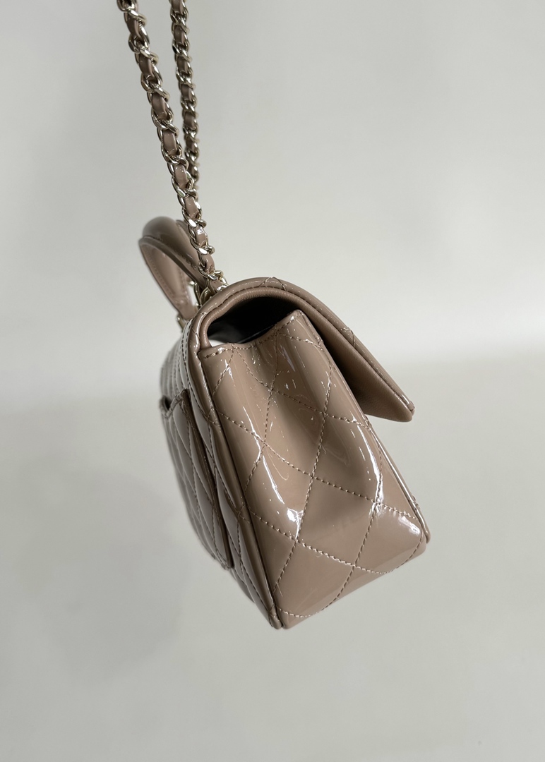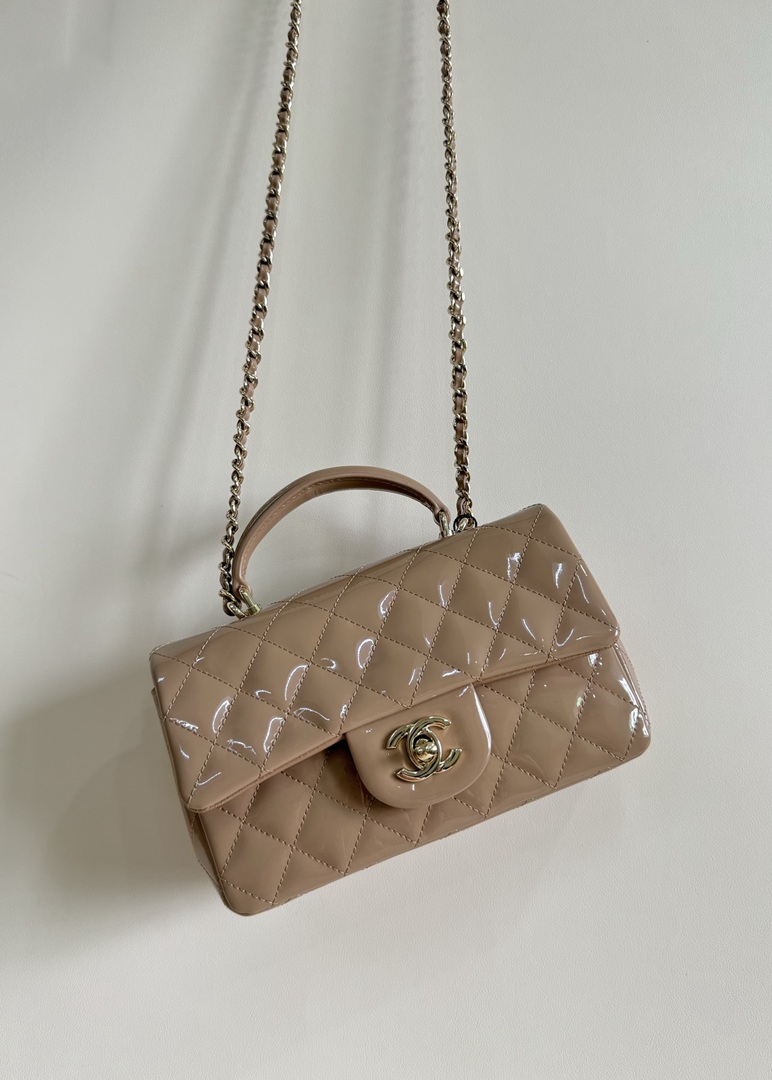 chanel 24k cf mini handle light beige patent leather gold hardware
