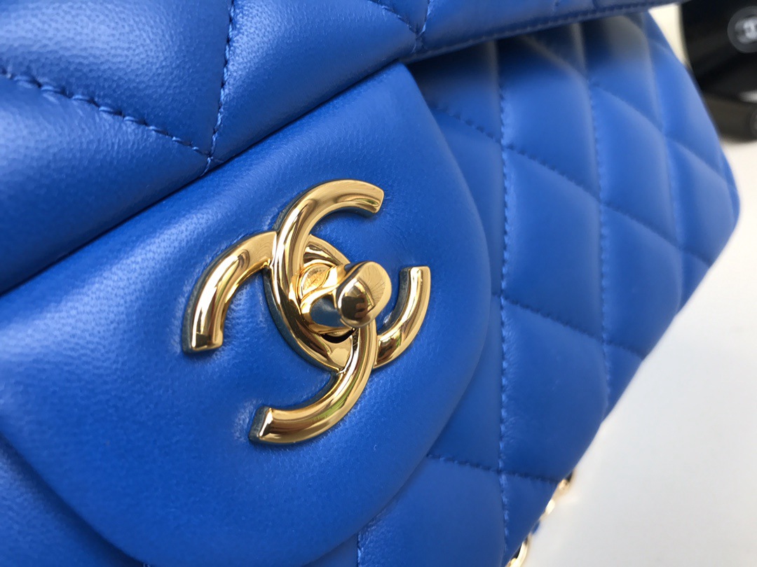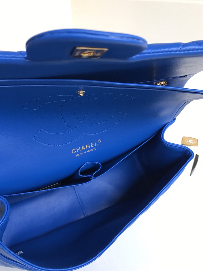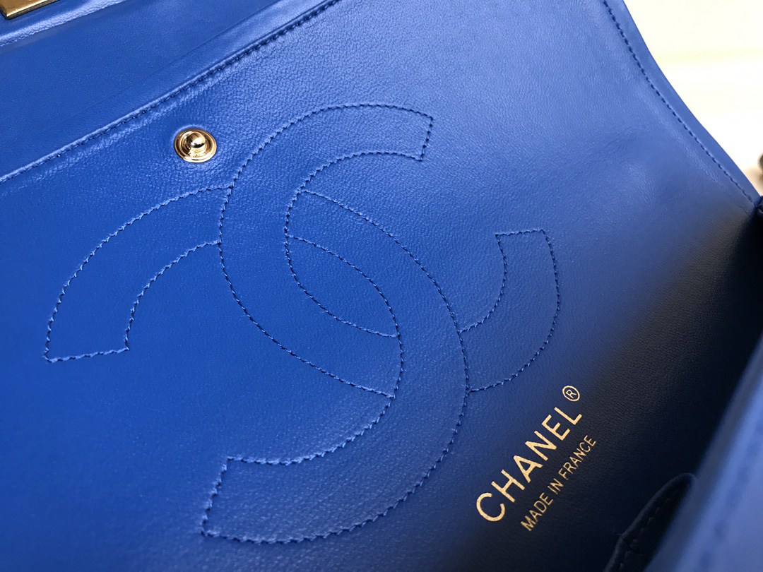 chanel cf Sapphire Blue shiny lambskin gold hardware