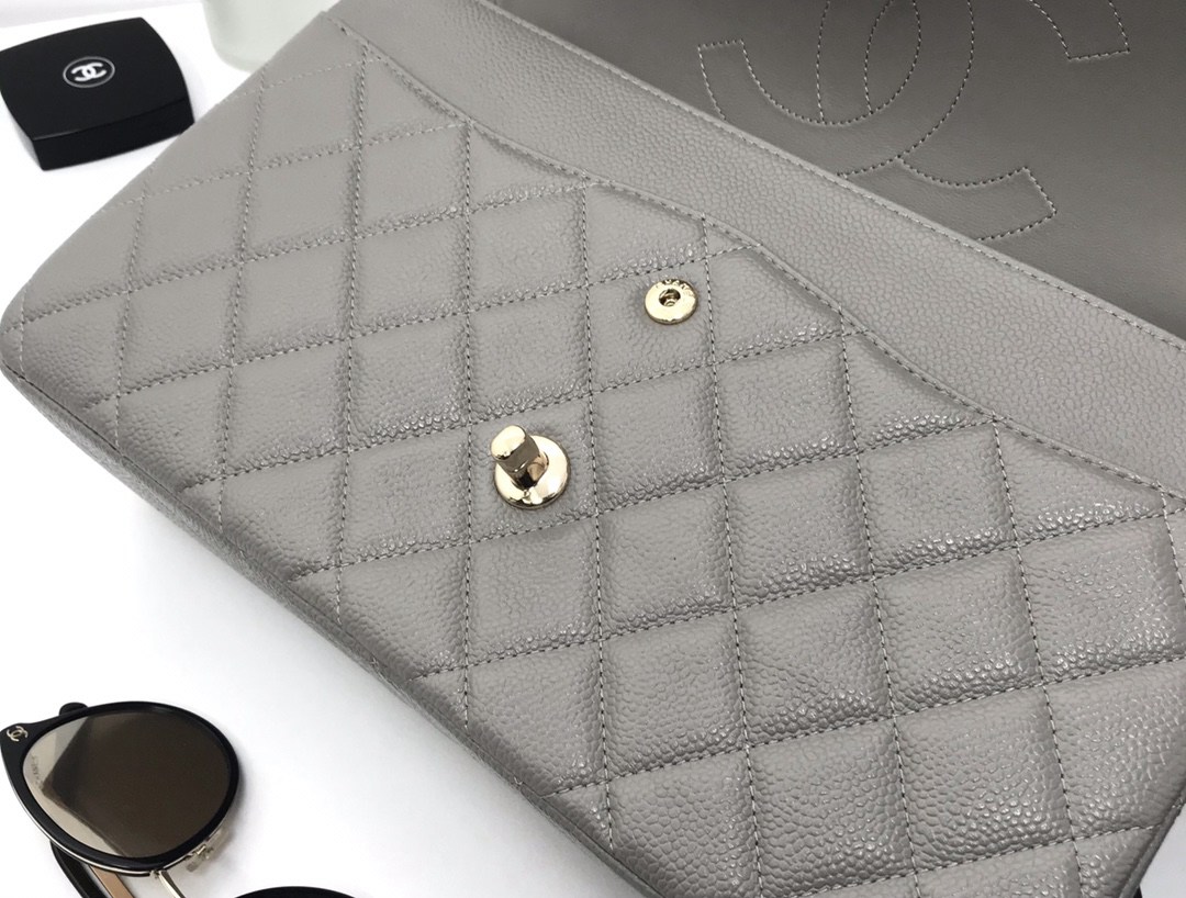 chanel cf Dark Grey Caviar calfskin gold hardware