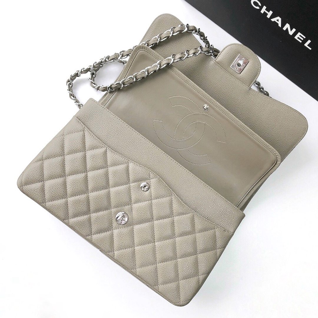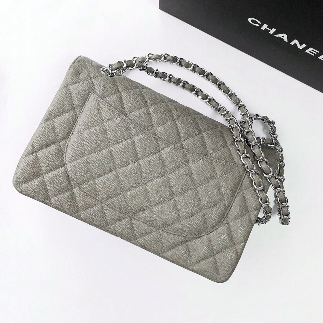 chanel cf Dark Grey Caviar calfskin sliver hardware