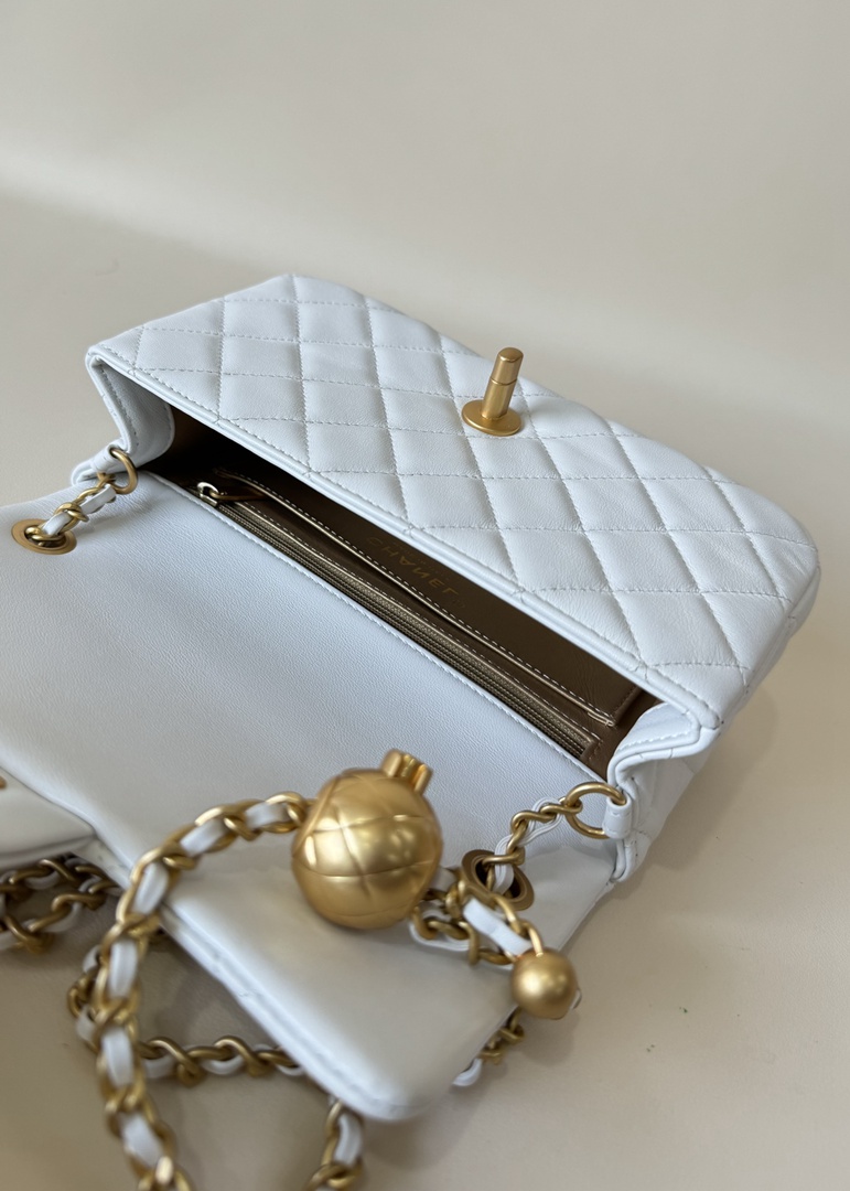 chanel 2020 Golden Globe mini cf white shiny lambskin gold hardware