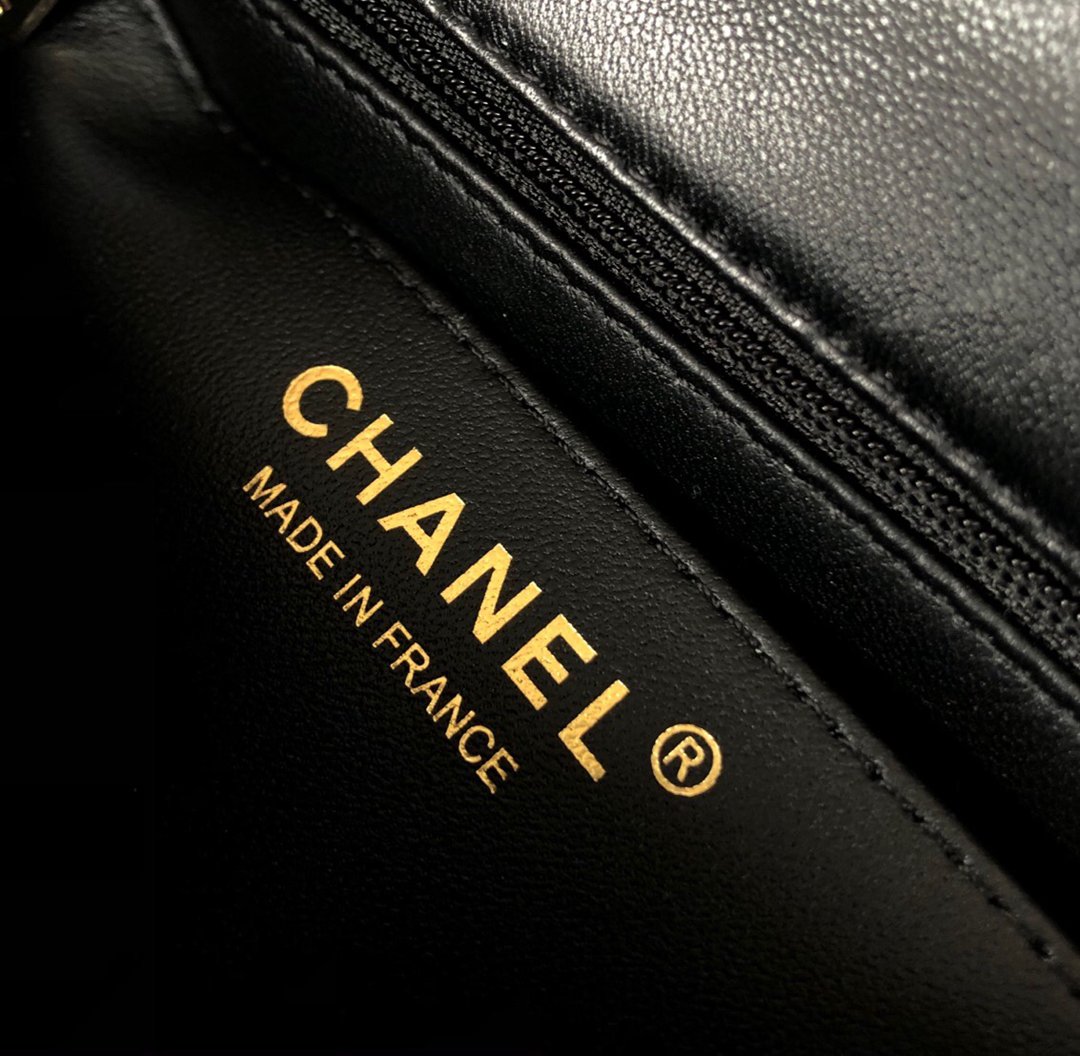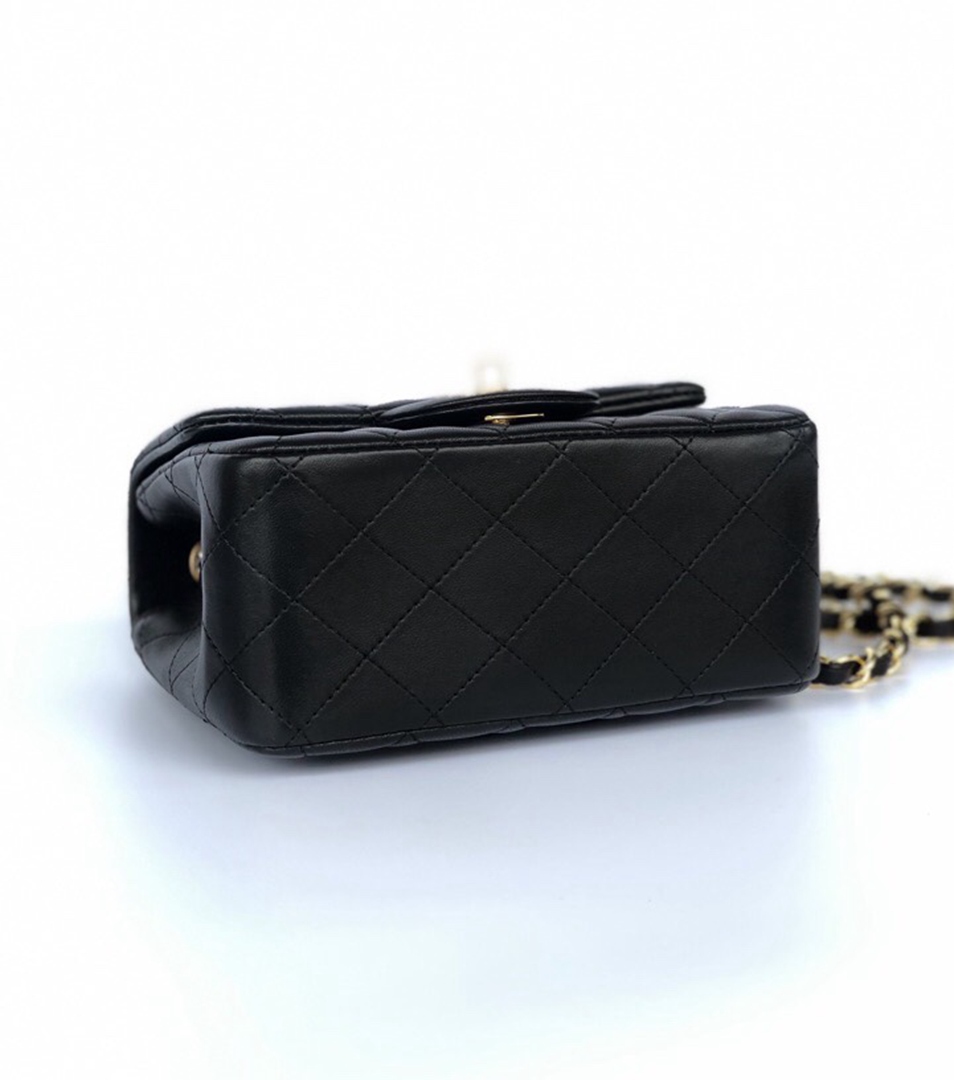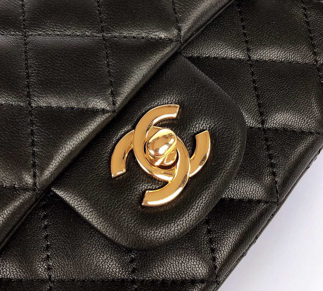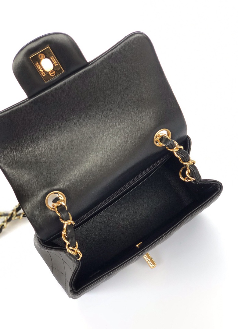 chanel mini cf black shiny lambskin gold hardware