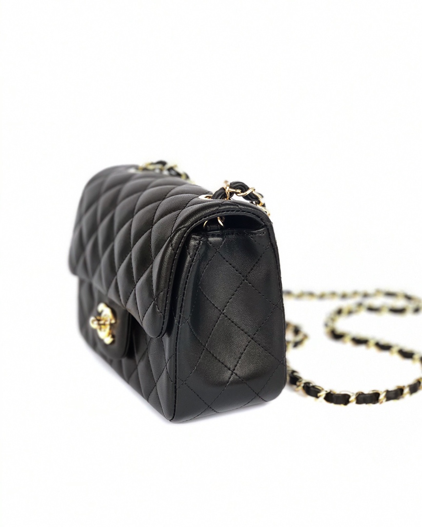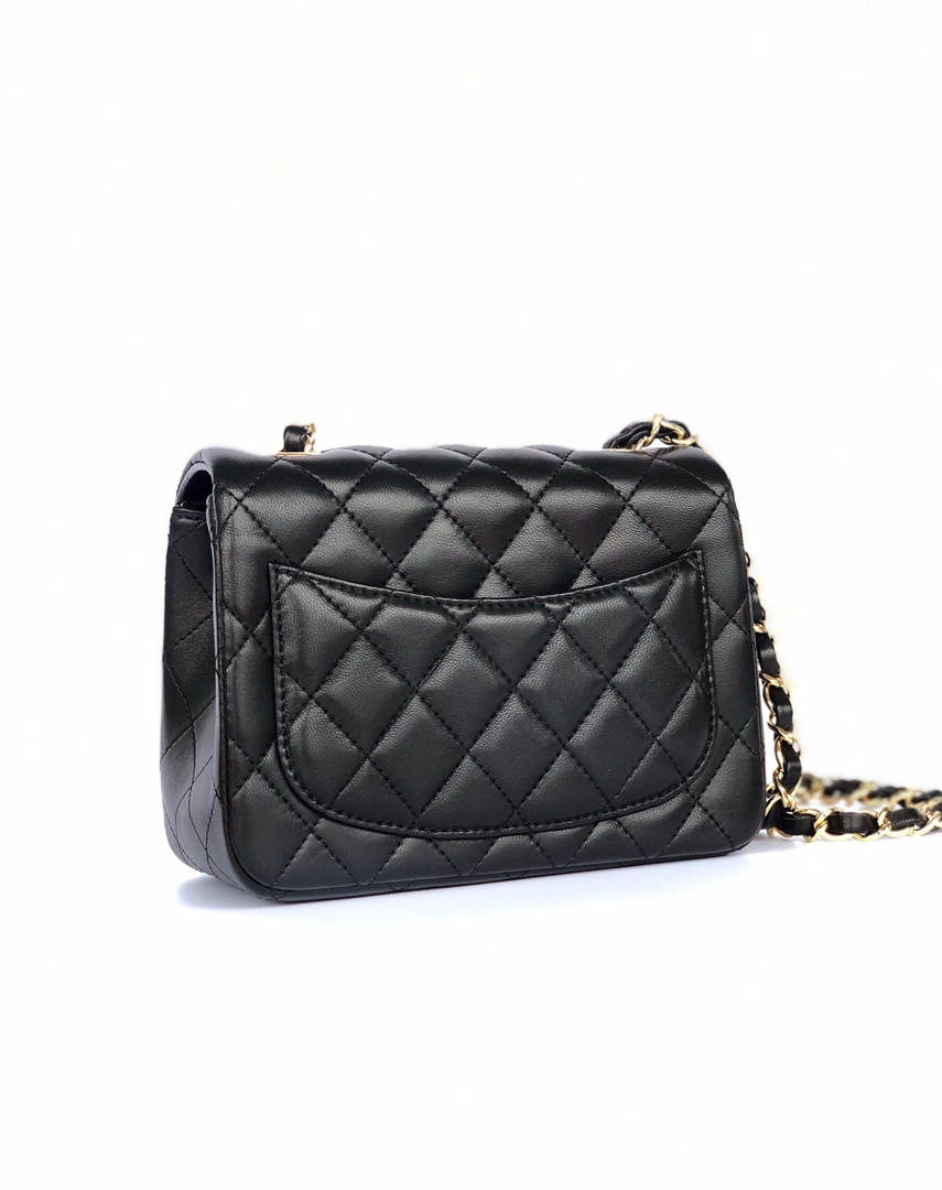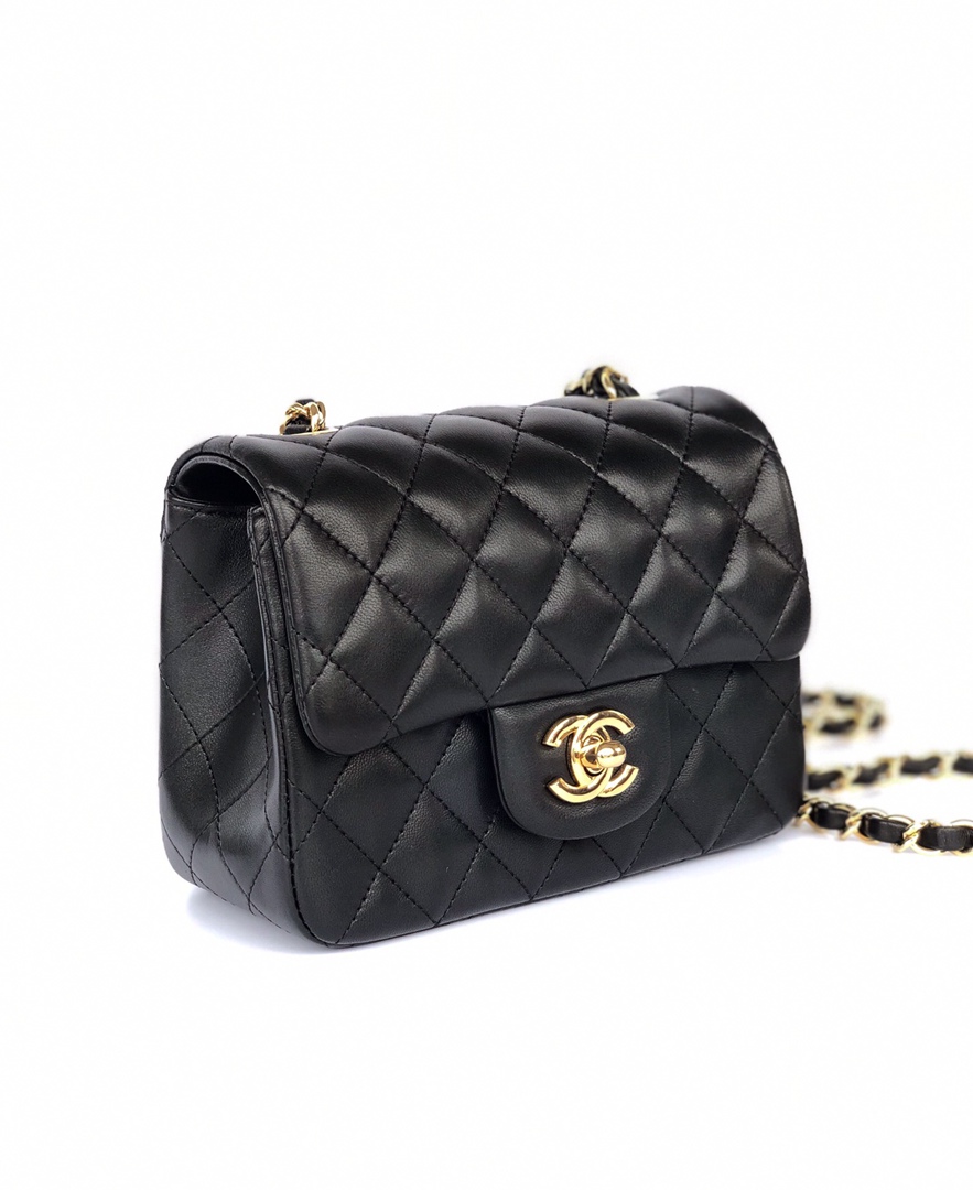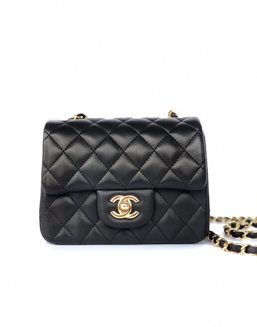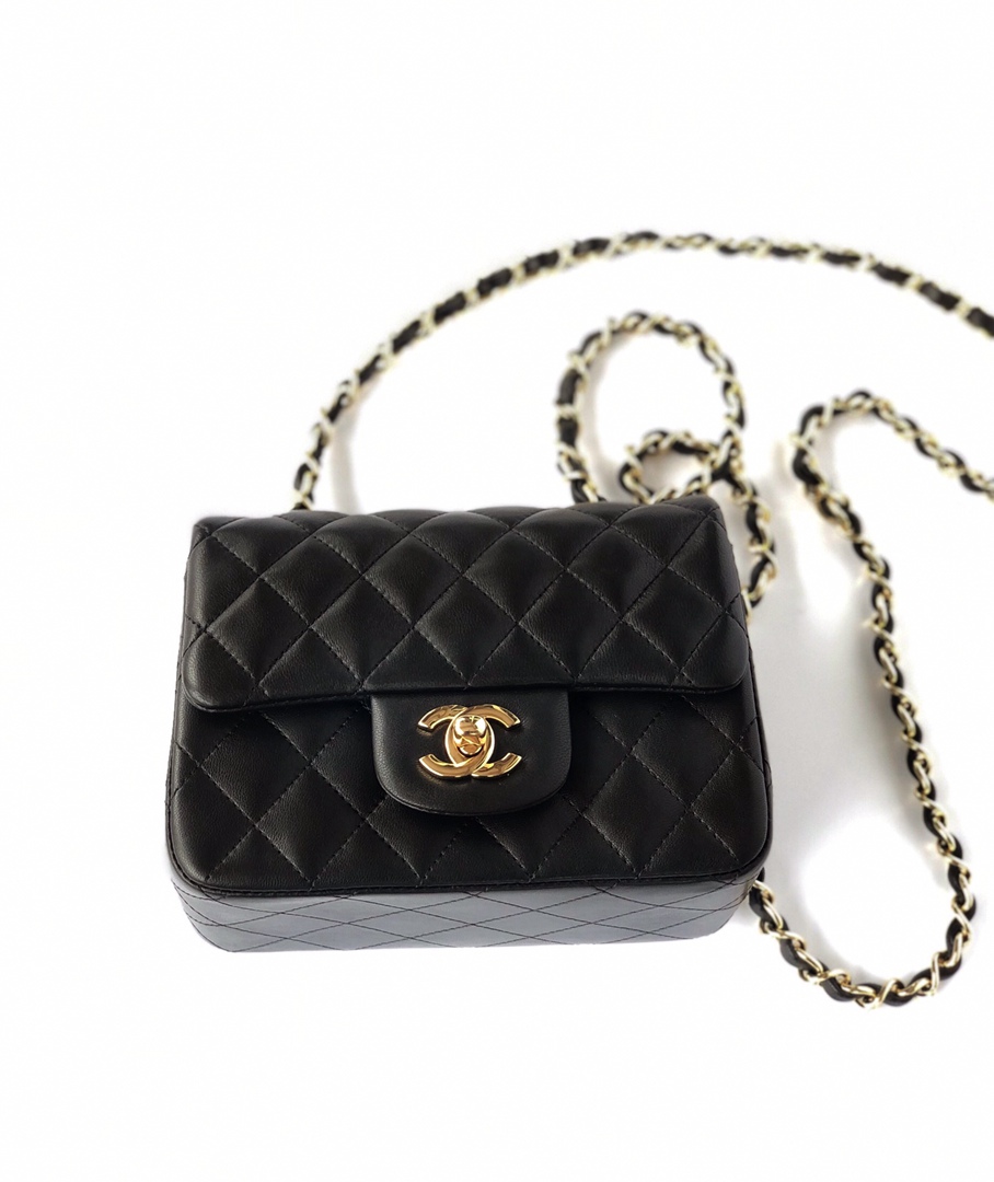 chanel mini cf black shiny lambskin gold hardware