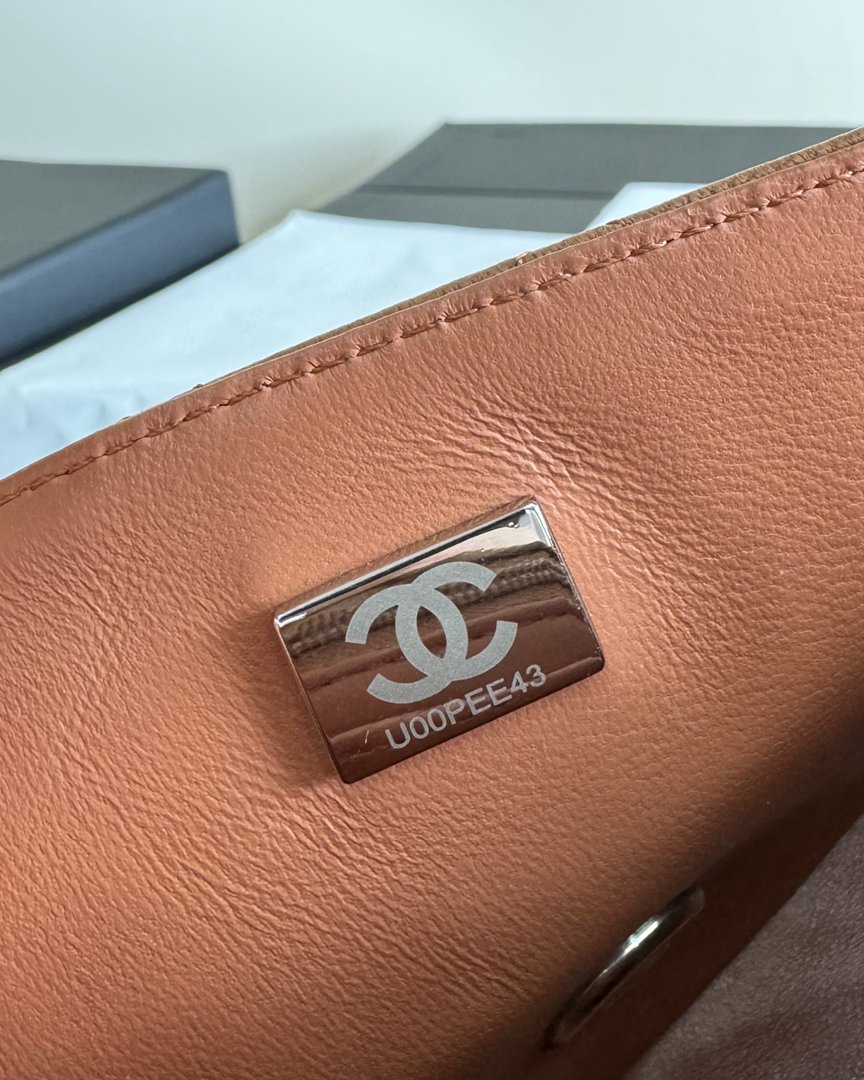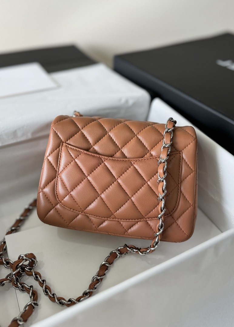 chanel mini cf Caramel shiny lambskin sliver hardware