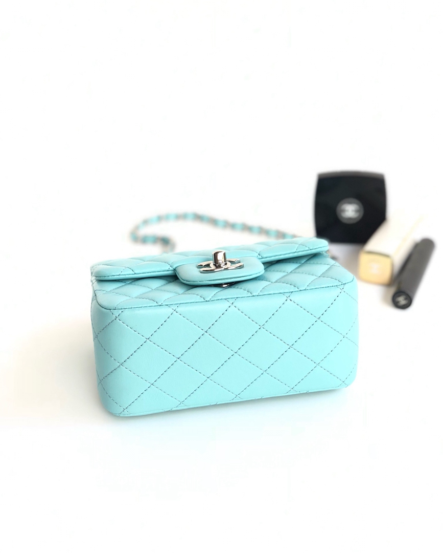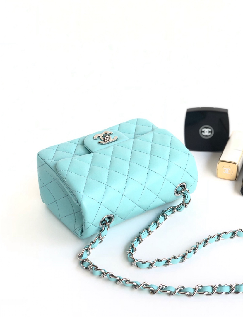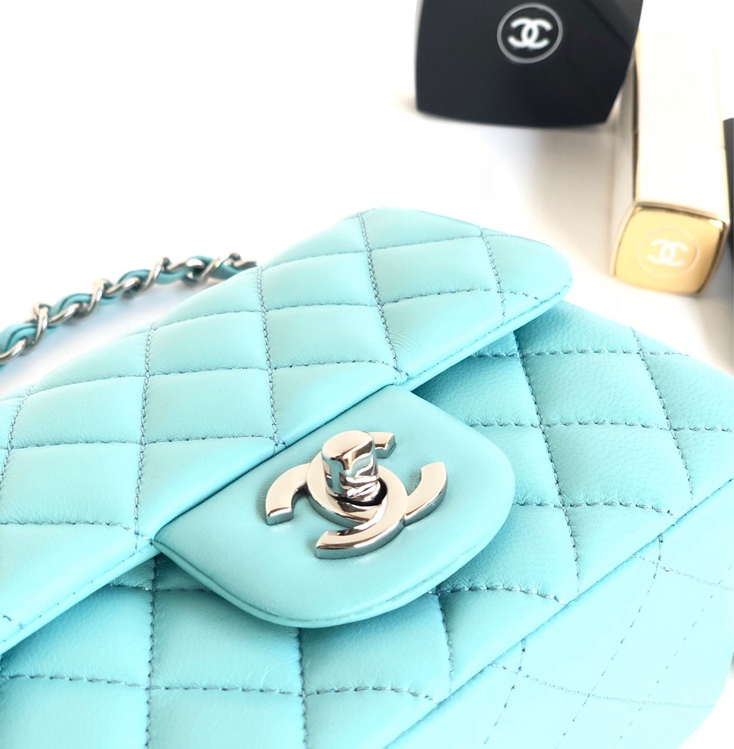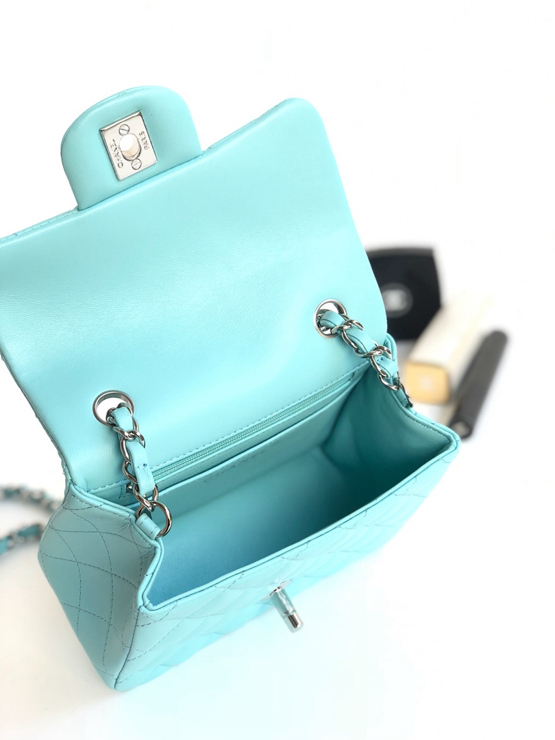 chanel mini cf Tiffany Blue shiny lambskin sliver hardware