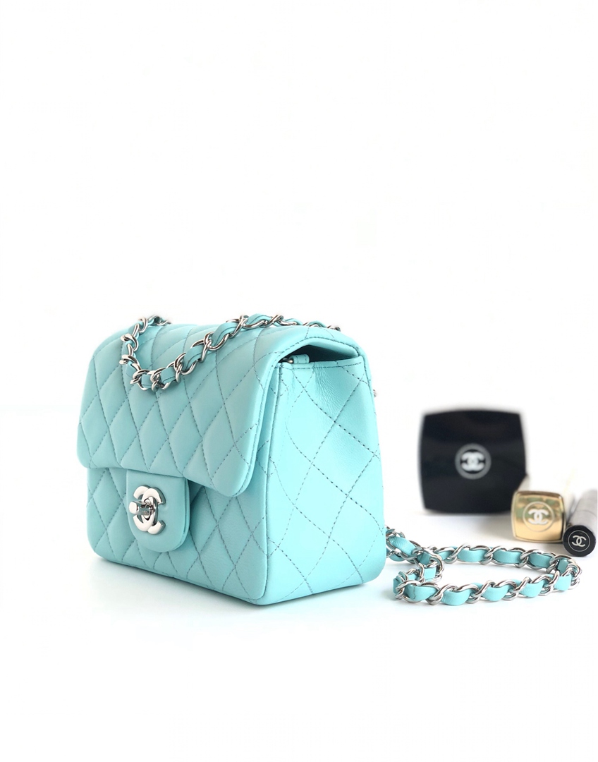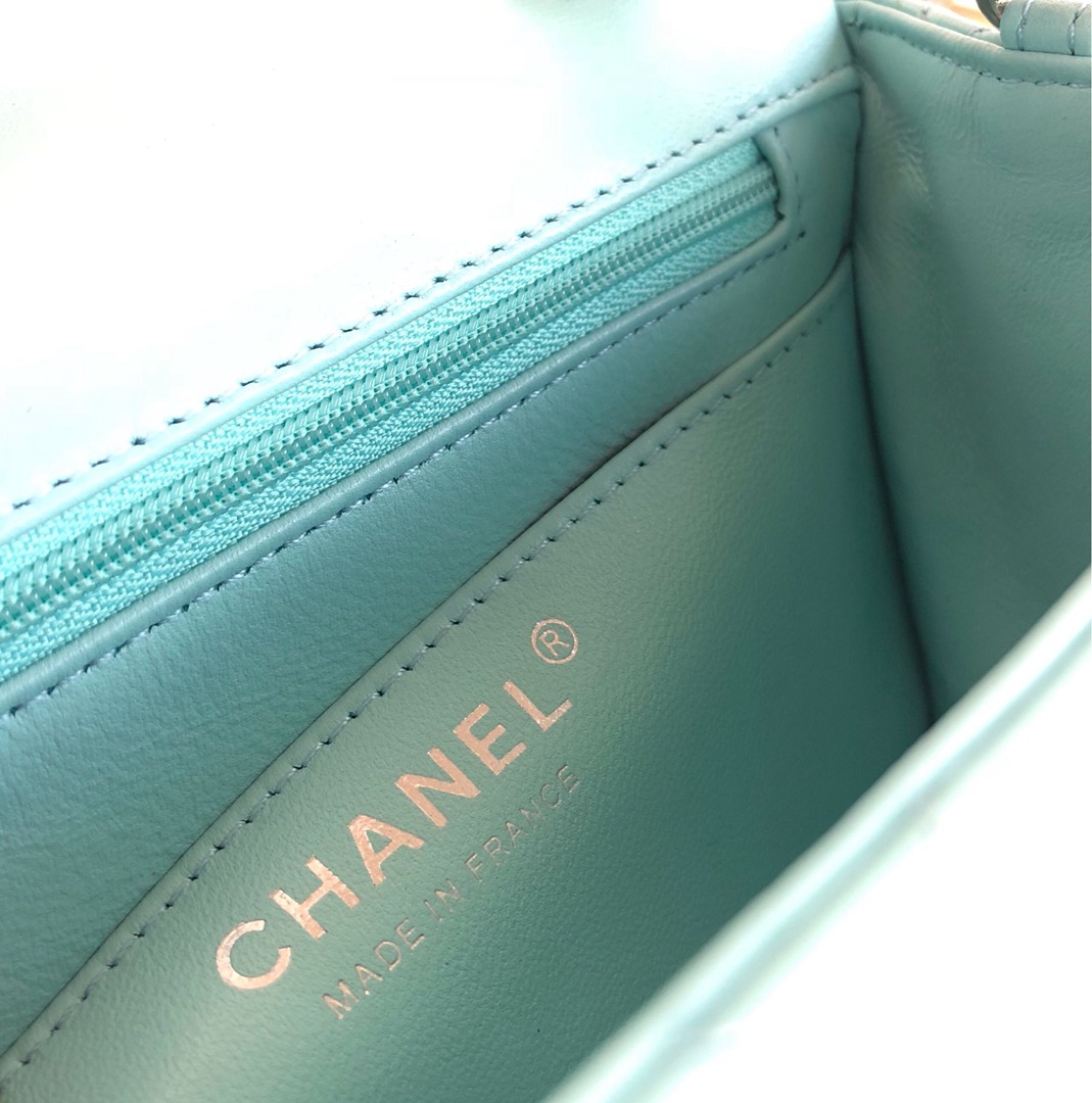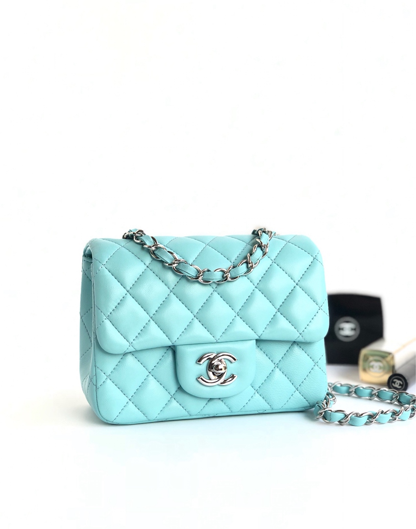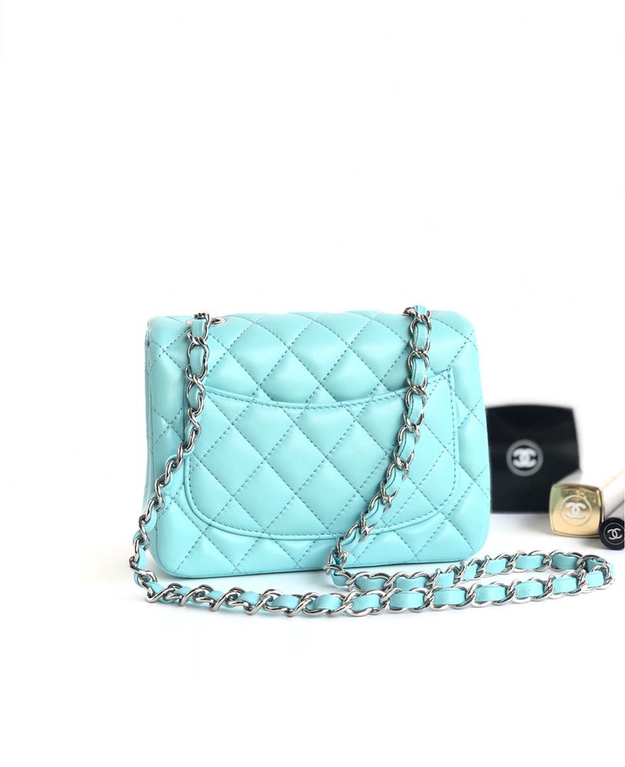 chanel mini cf Tiffany Blue shiny lambskin sliver hardware