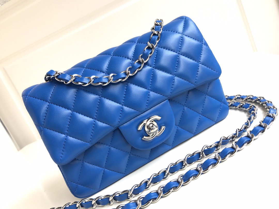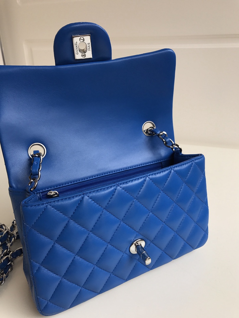 chanel cf Royal Blue shiny lambskin sliver hardware