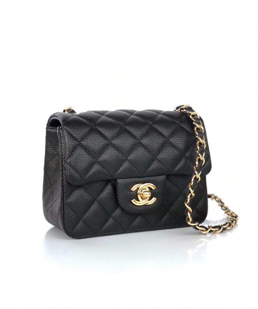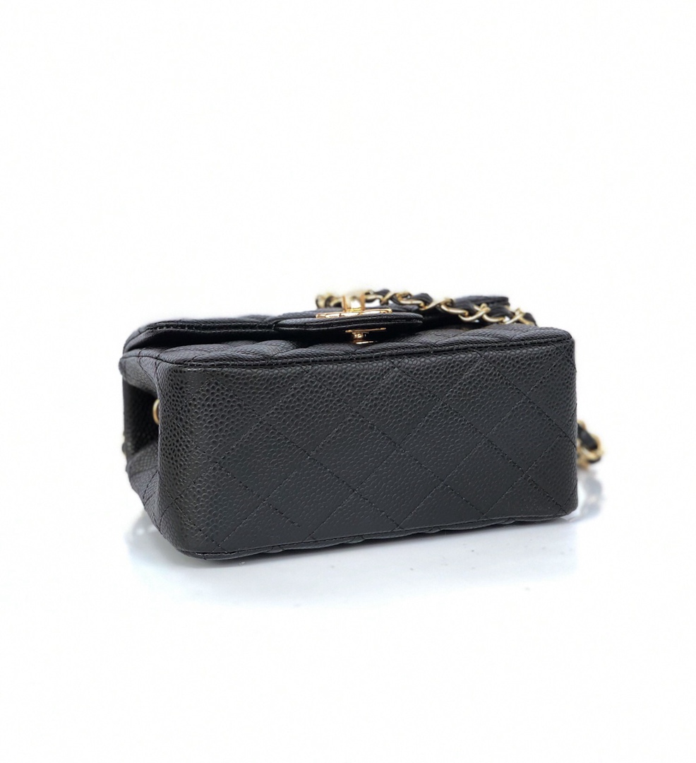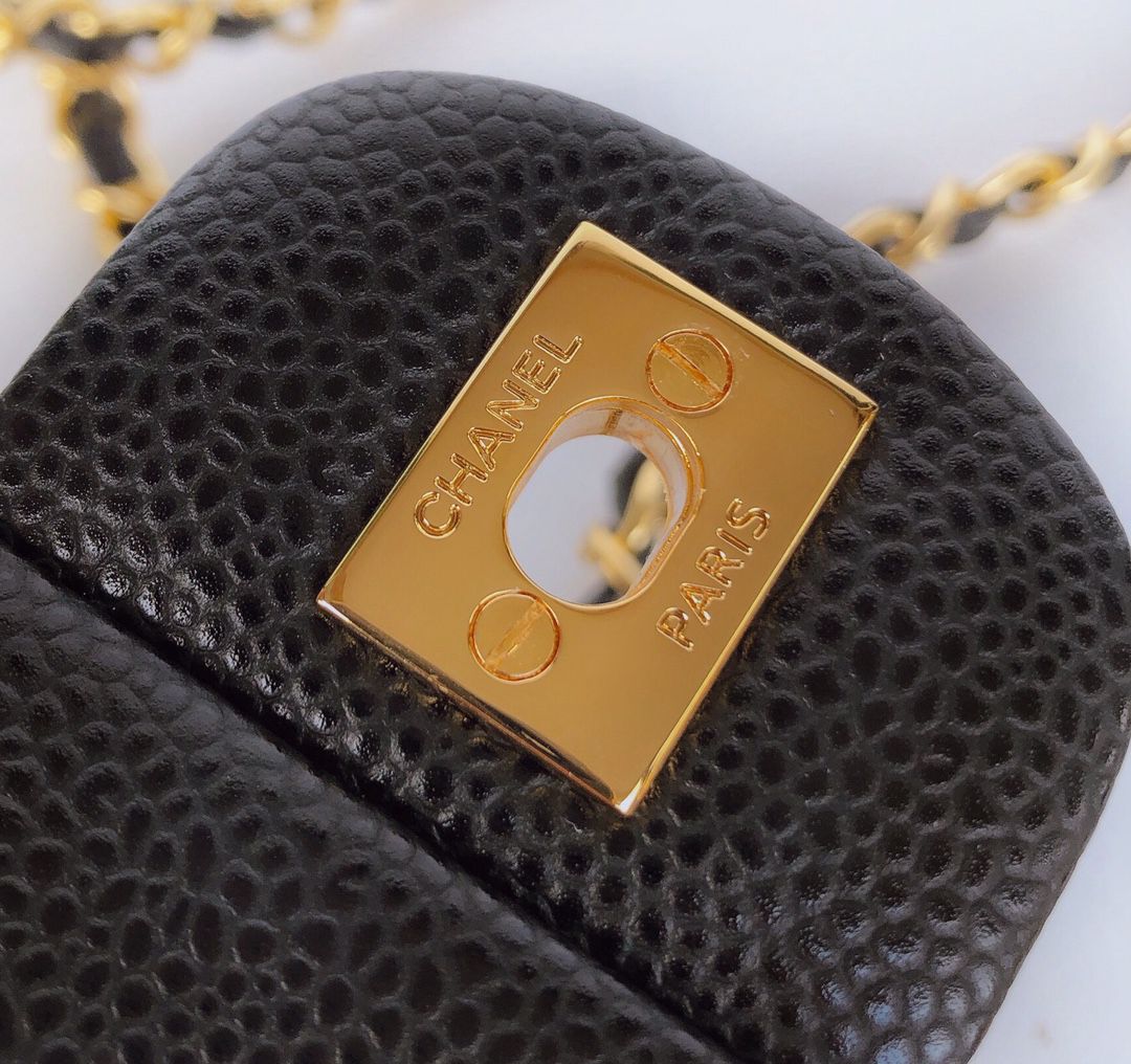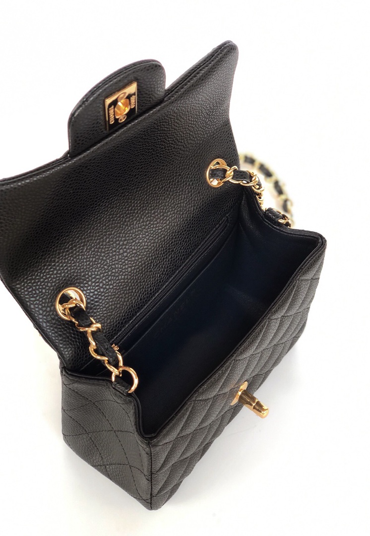 chanel mini cf black Caviar calfskin gold hardware