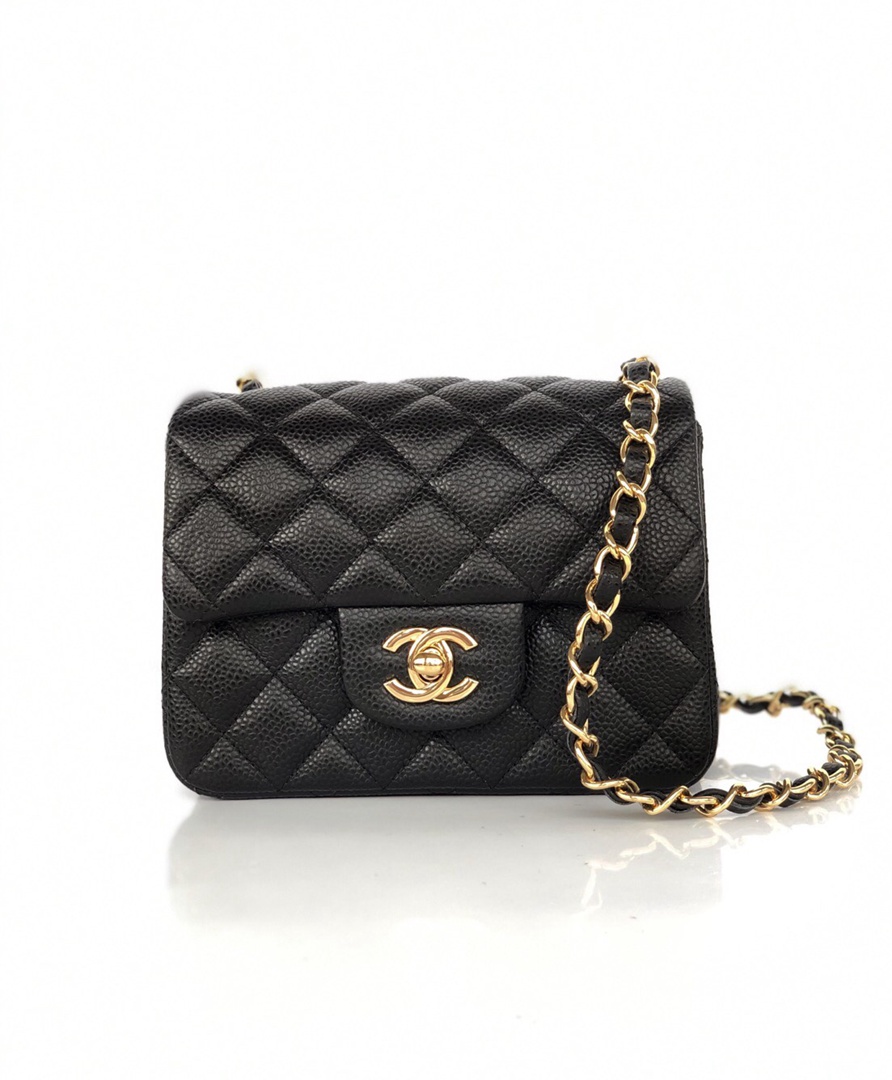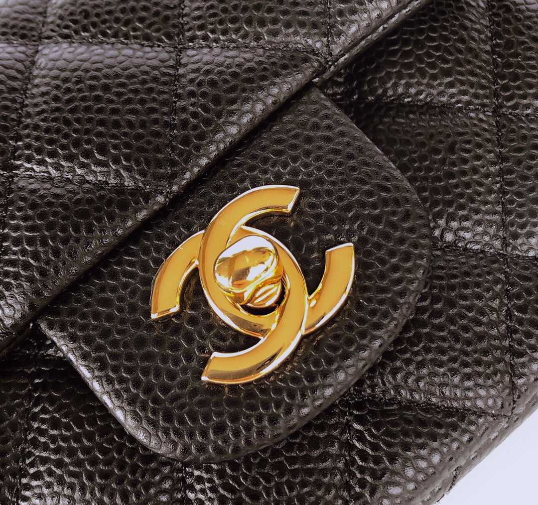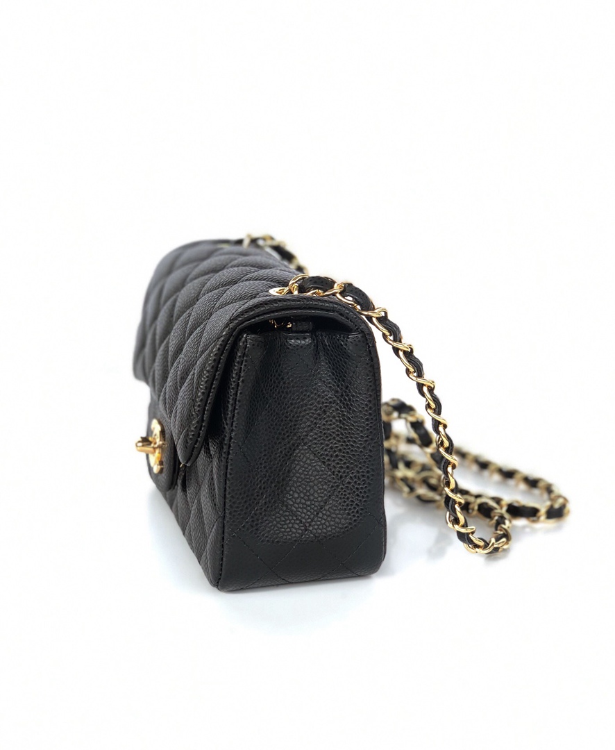 chanel mini cf black Caviar calfskin gold hardware