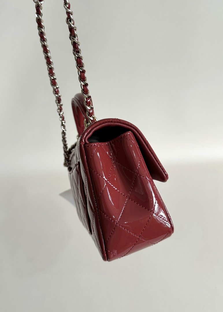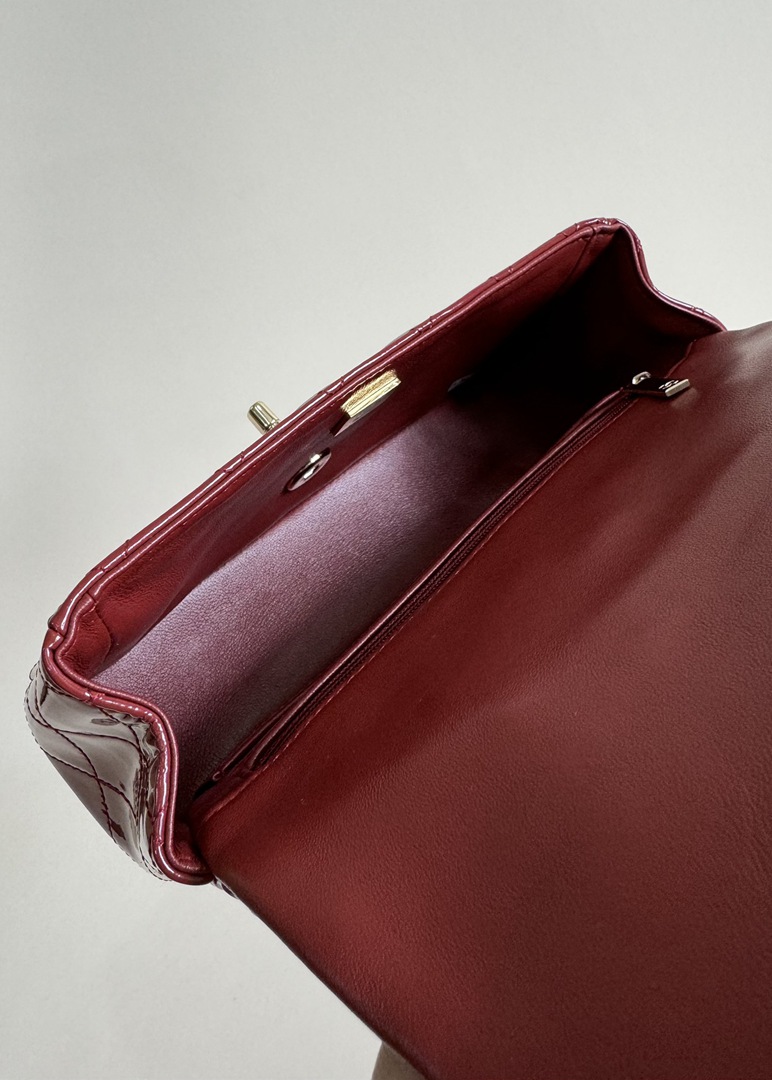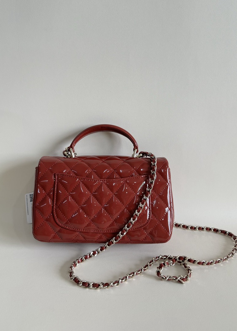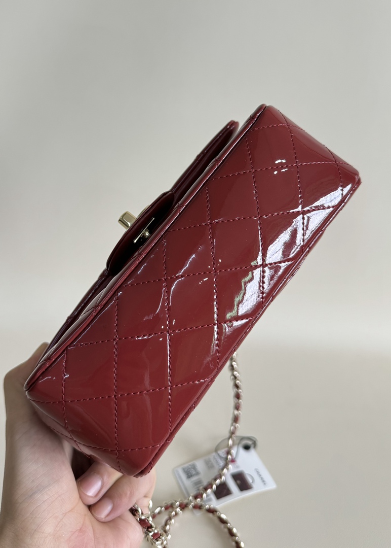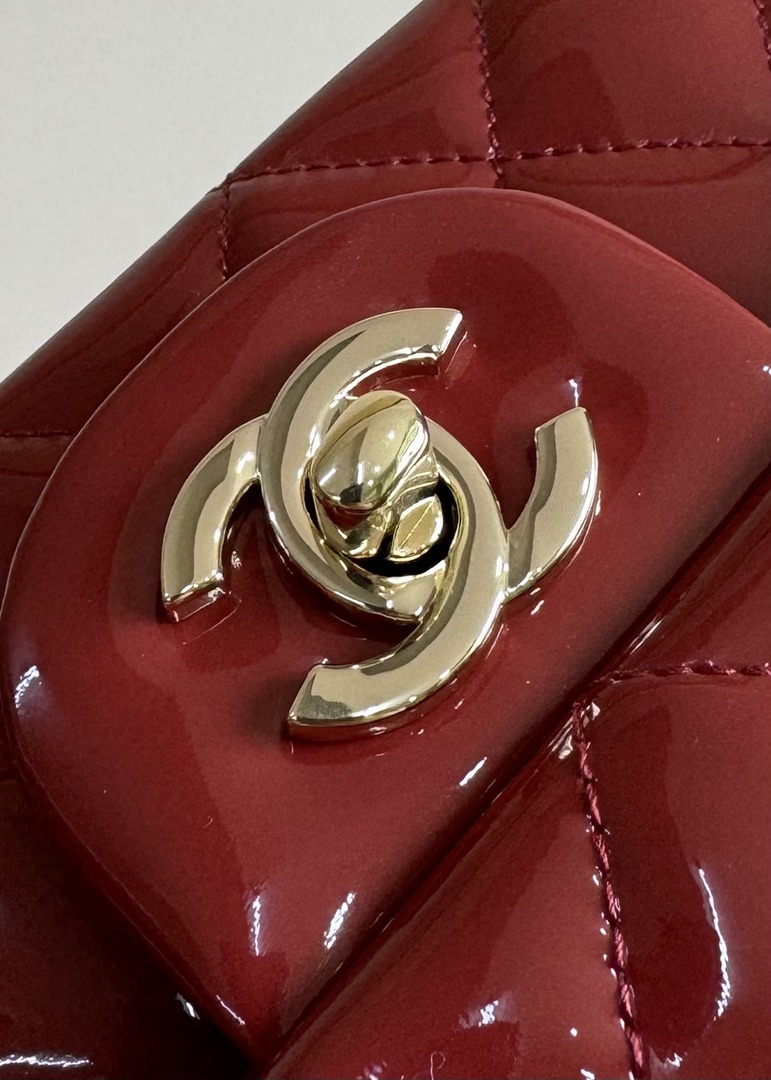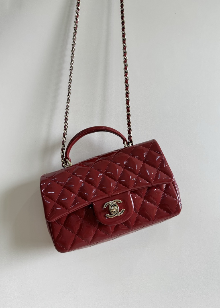 chanel 24k cf mini handle red patent leather gold hardware