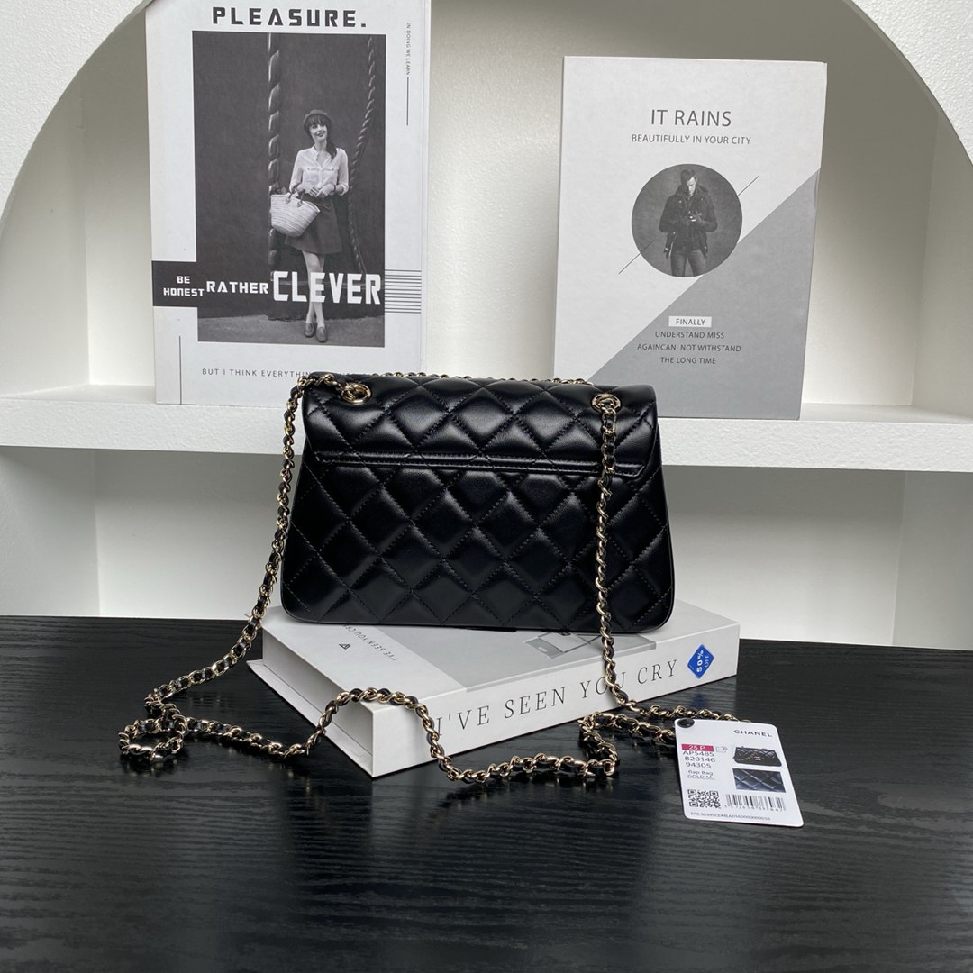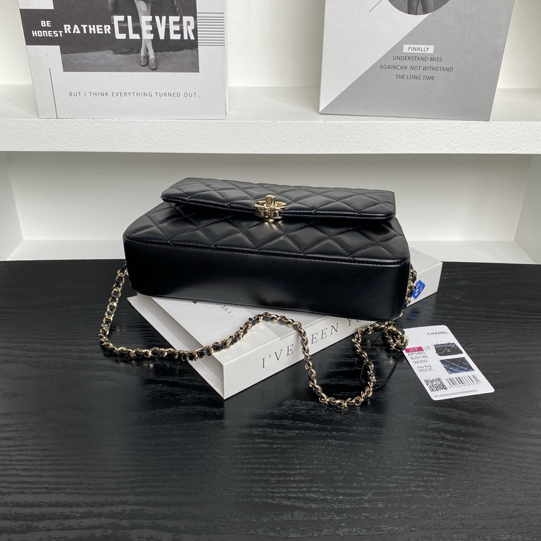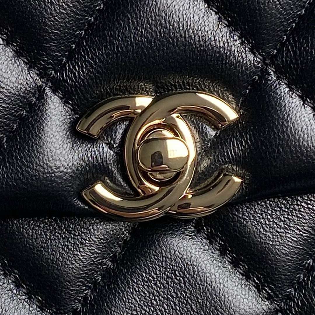 chanel 25s mini cf black shiny lambskin gold hardware large