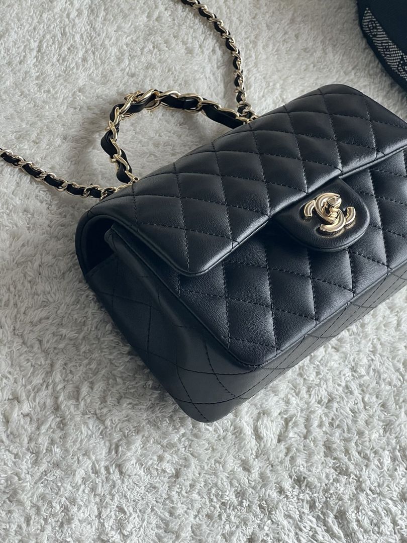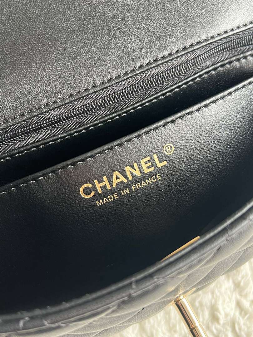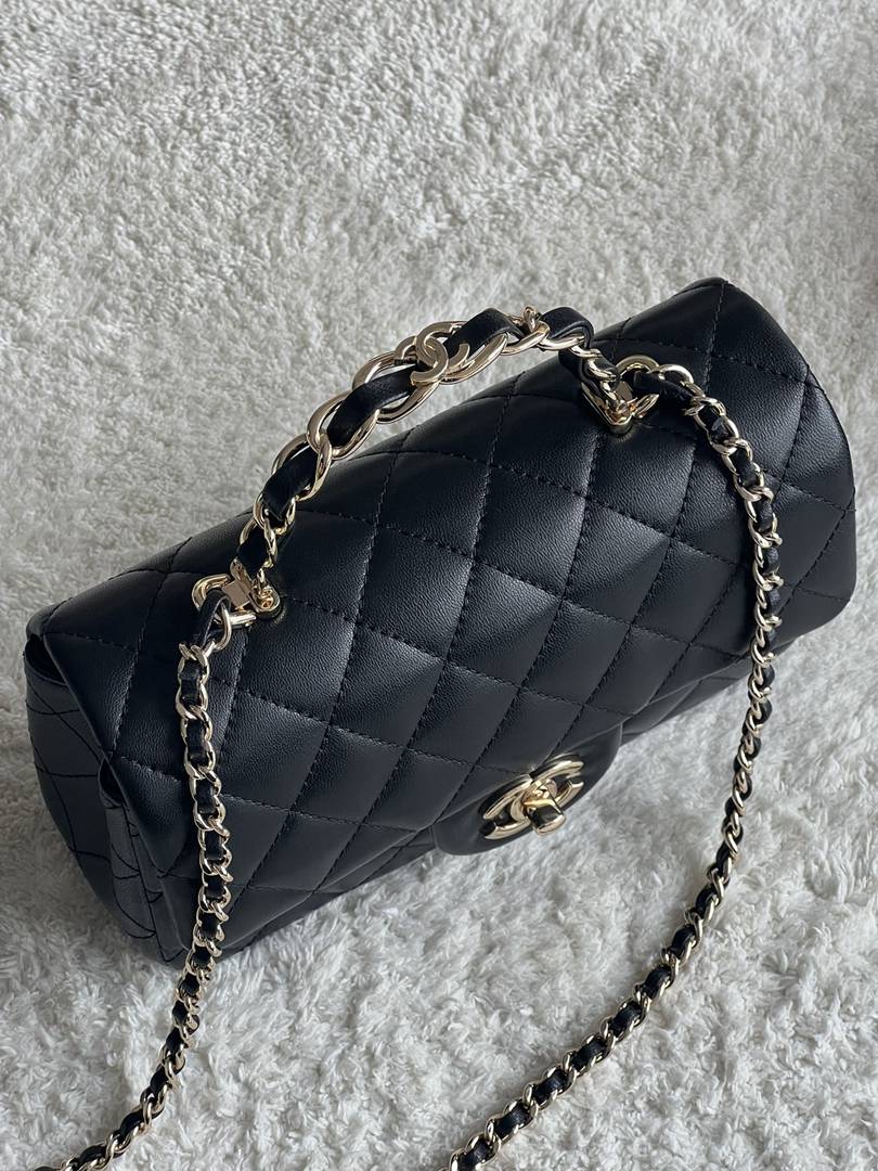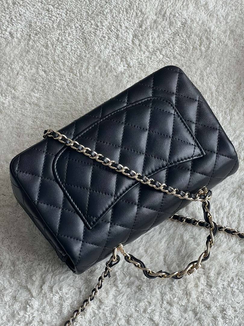 chanel 23k mini handle cf black shiny lambskin steel hardware