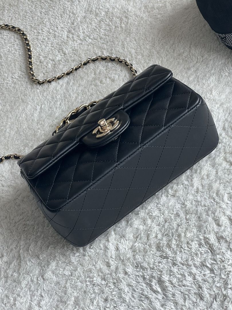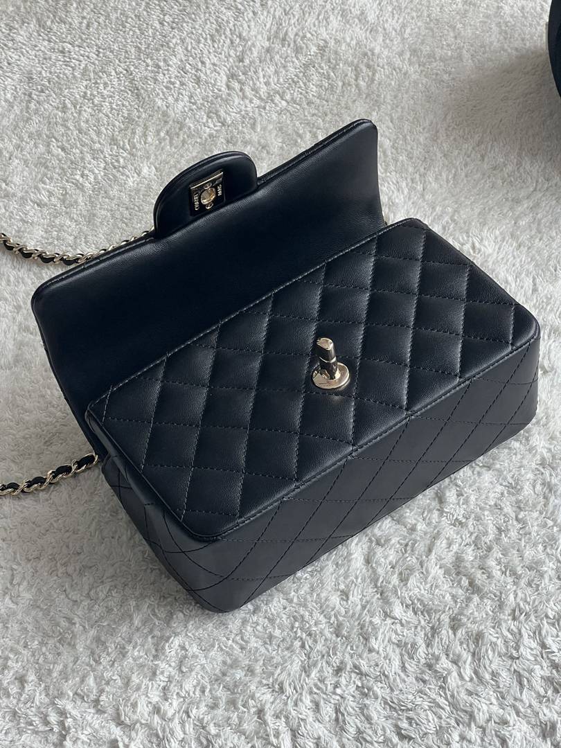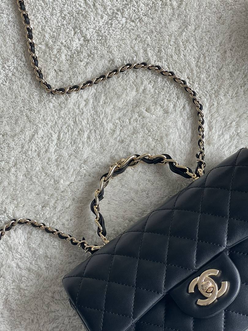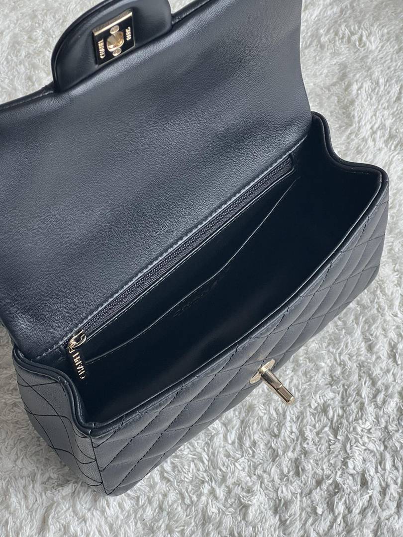 chanel 23k mini handle cf black shiny lambskin steel hardware