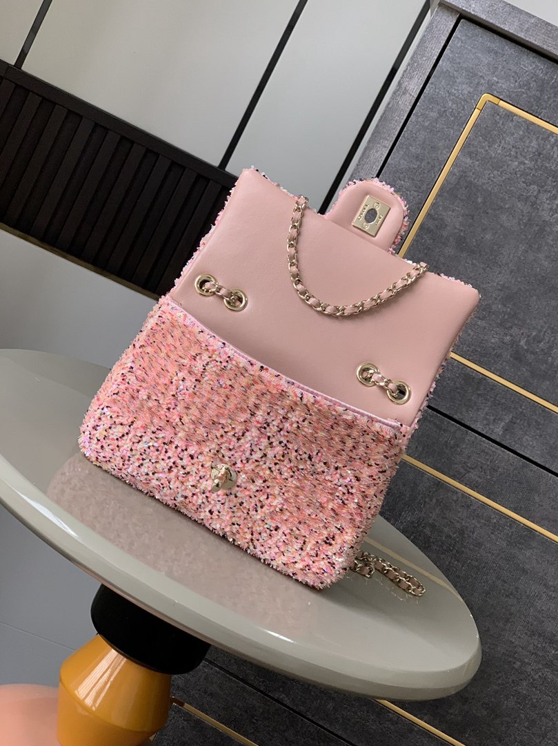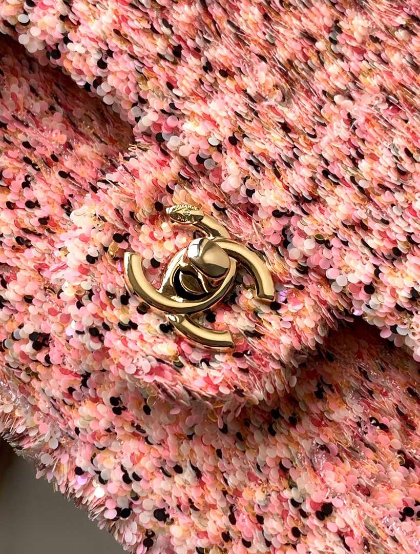 chanel 25s cf Black&pink sequins gold hardware