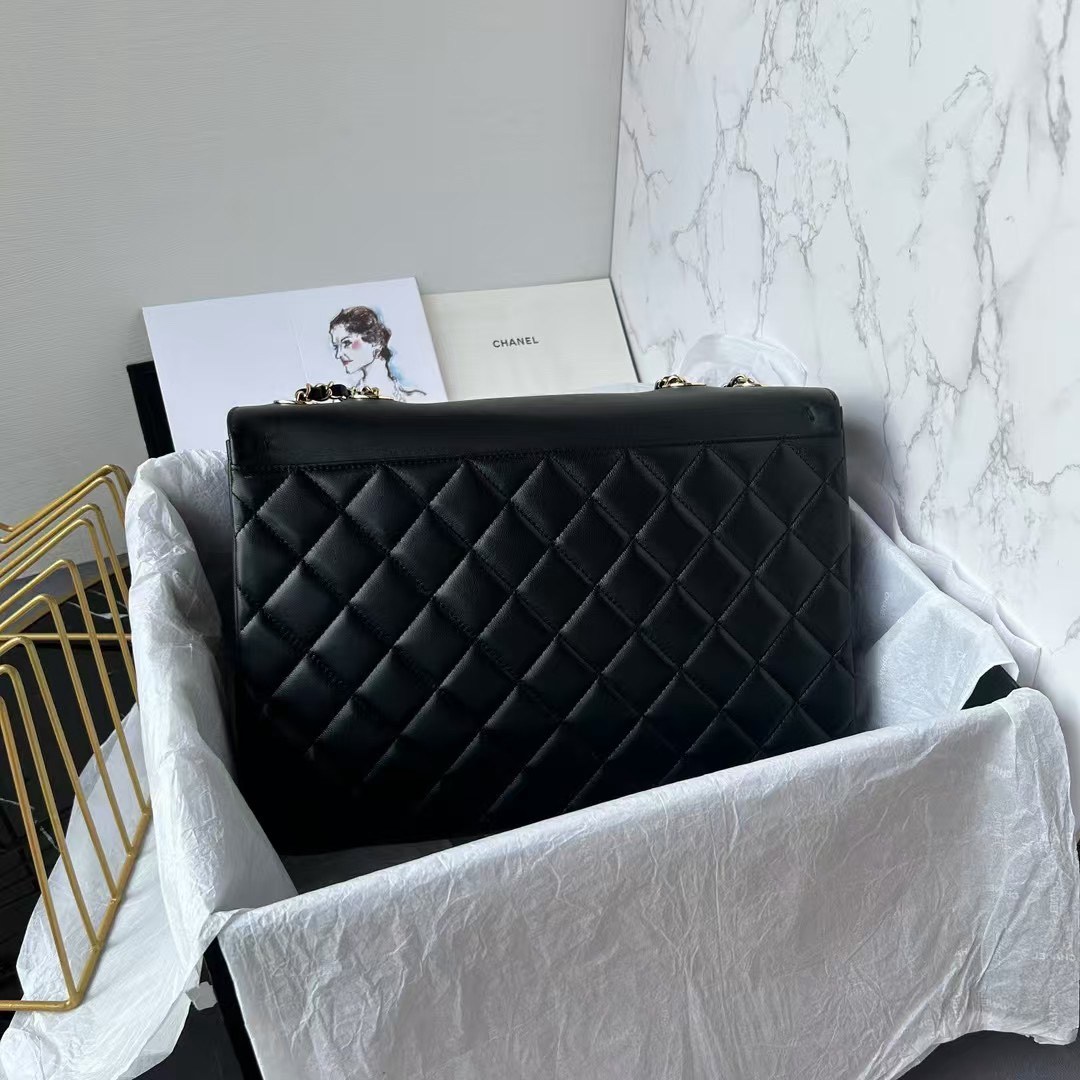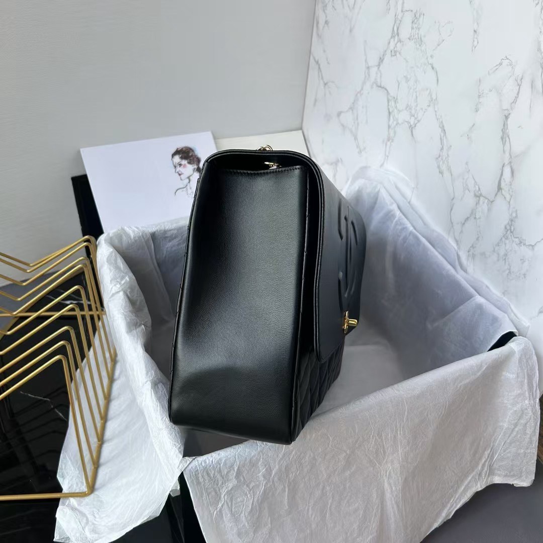chanel maxi cf black shiny lambskin gold hardwarelarge