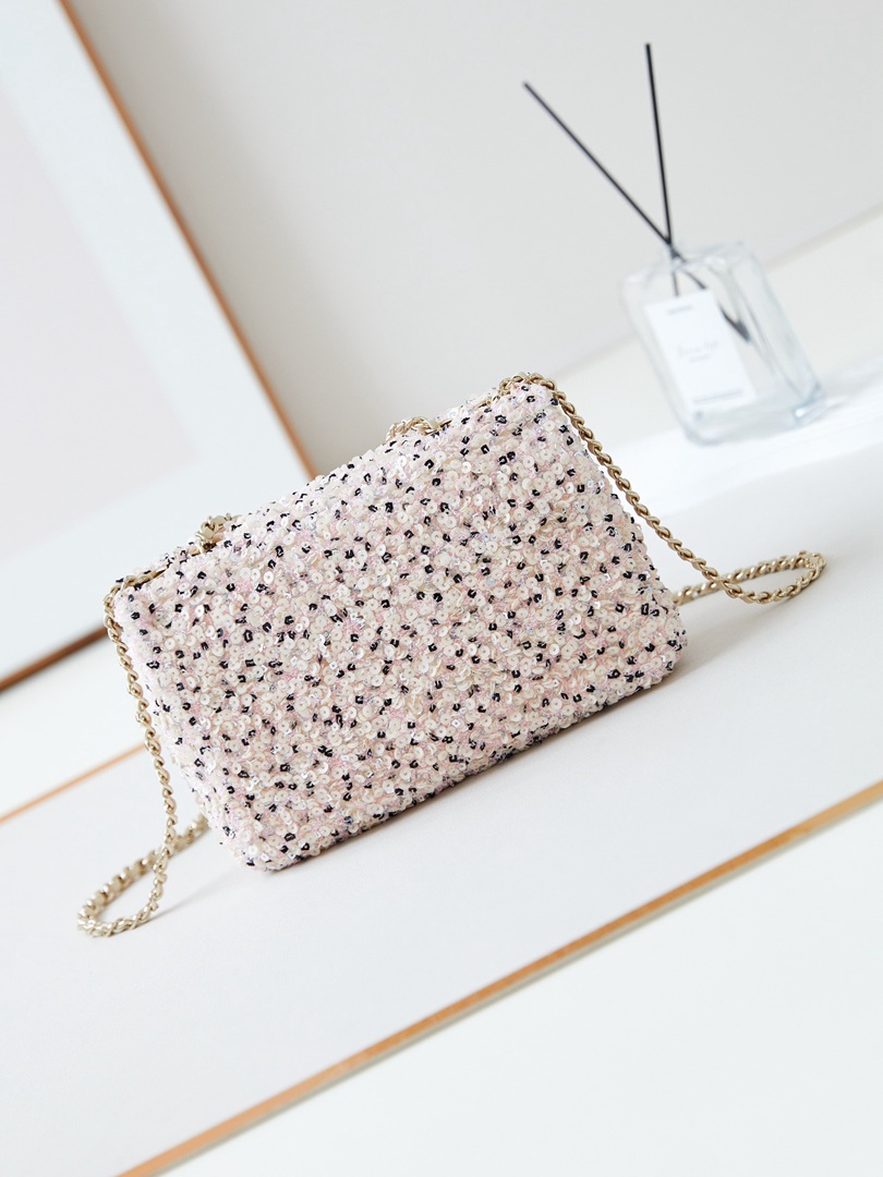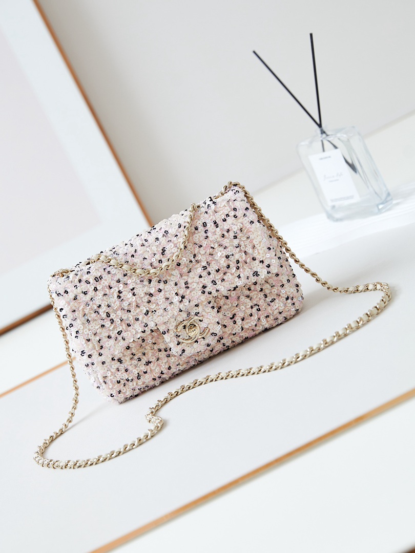 chanel 22s cf pink&white Colorful letter sequins gold hardware