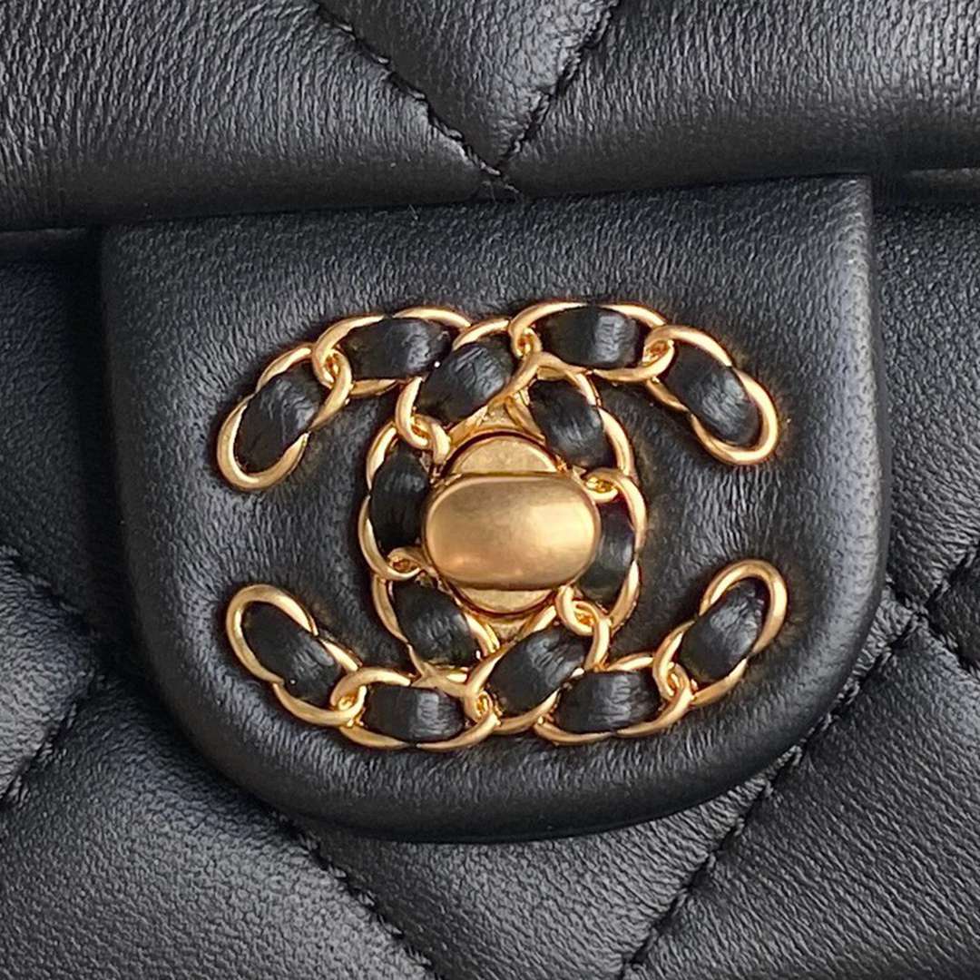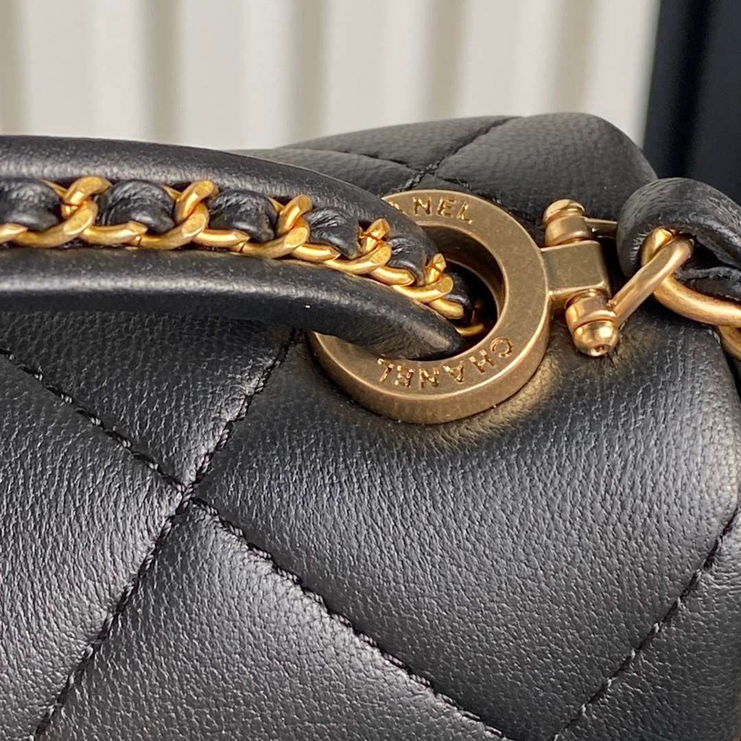 chanel 25c top handle cf black shiny lambskin Hollow gold cc&gold hardware small