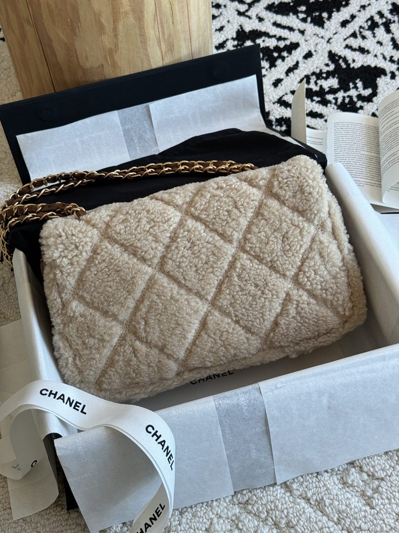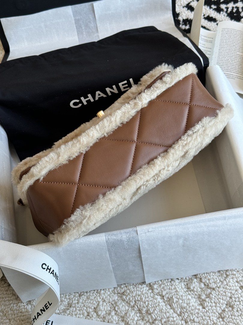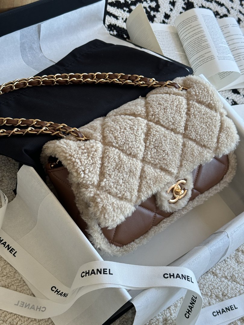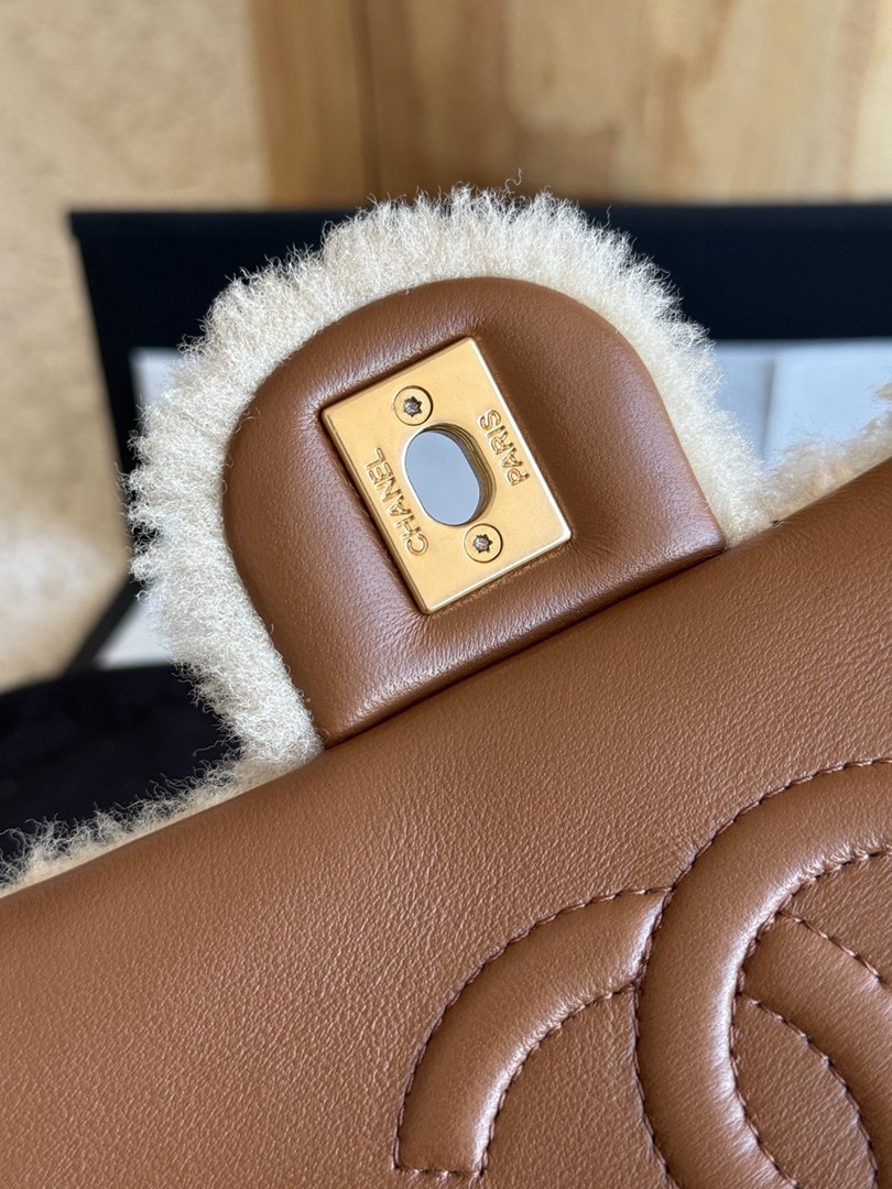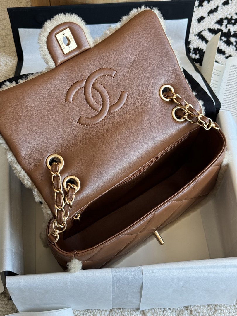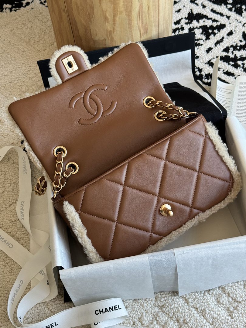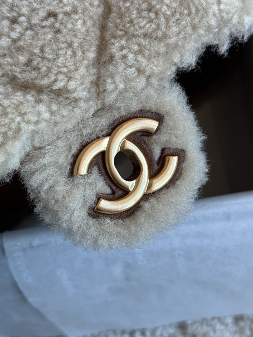 chanel 24k cf Beige Brown Teddy Bear Shearling copper hardware