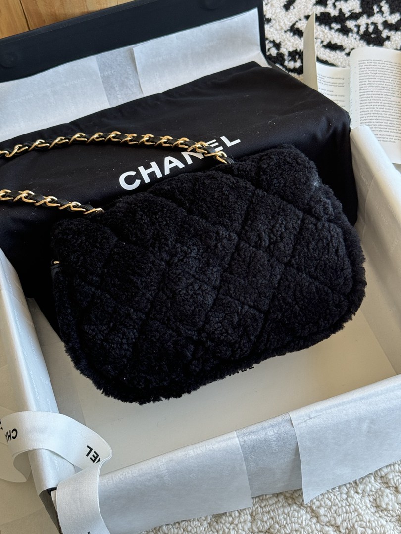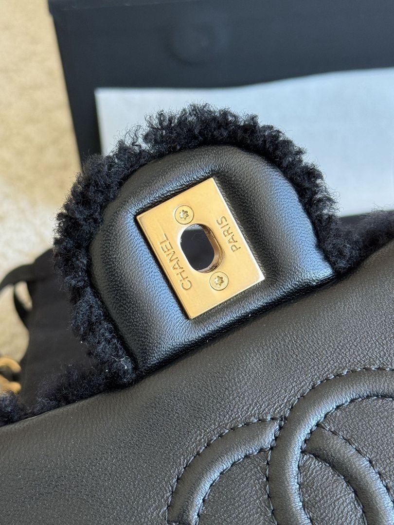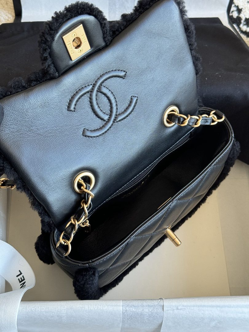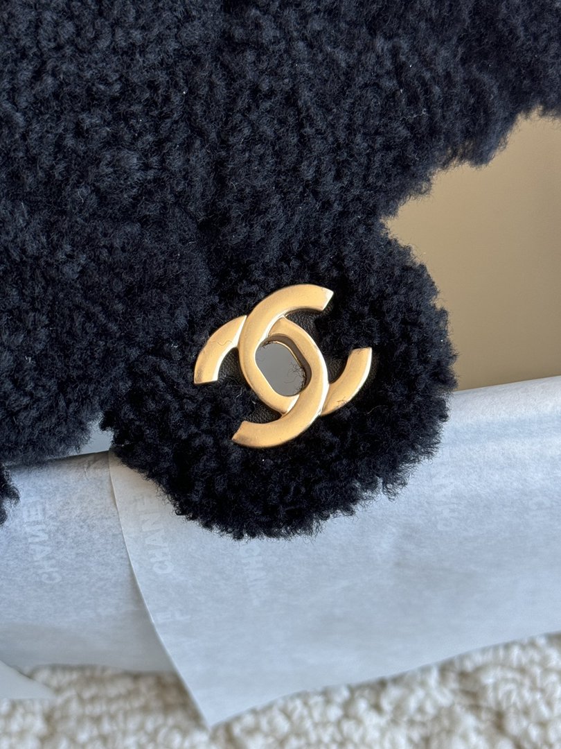 chanel 24k cf black Teddy Bear Shearling copper hardware small