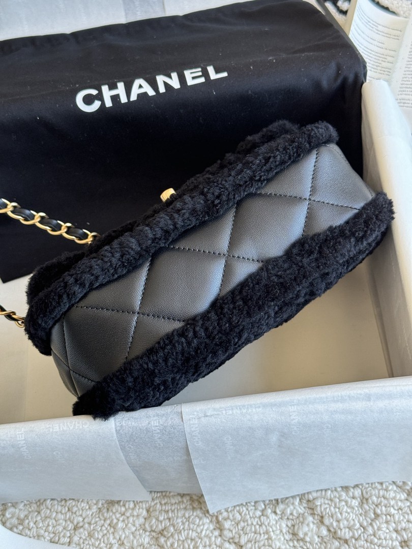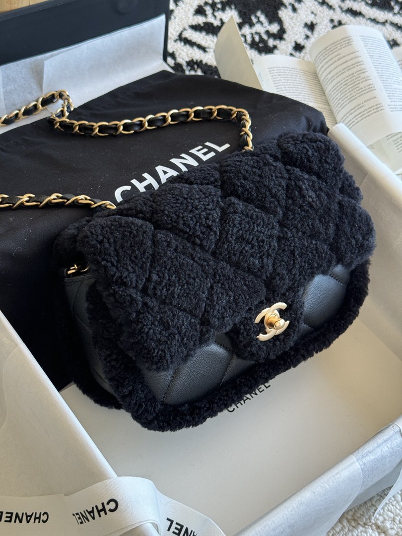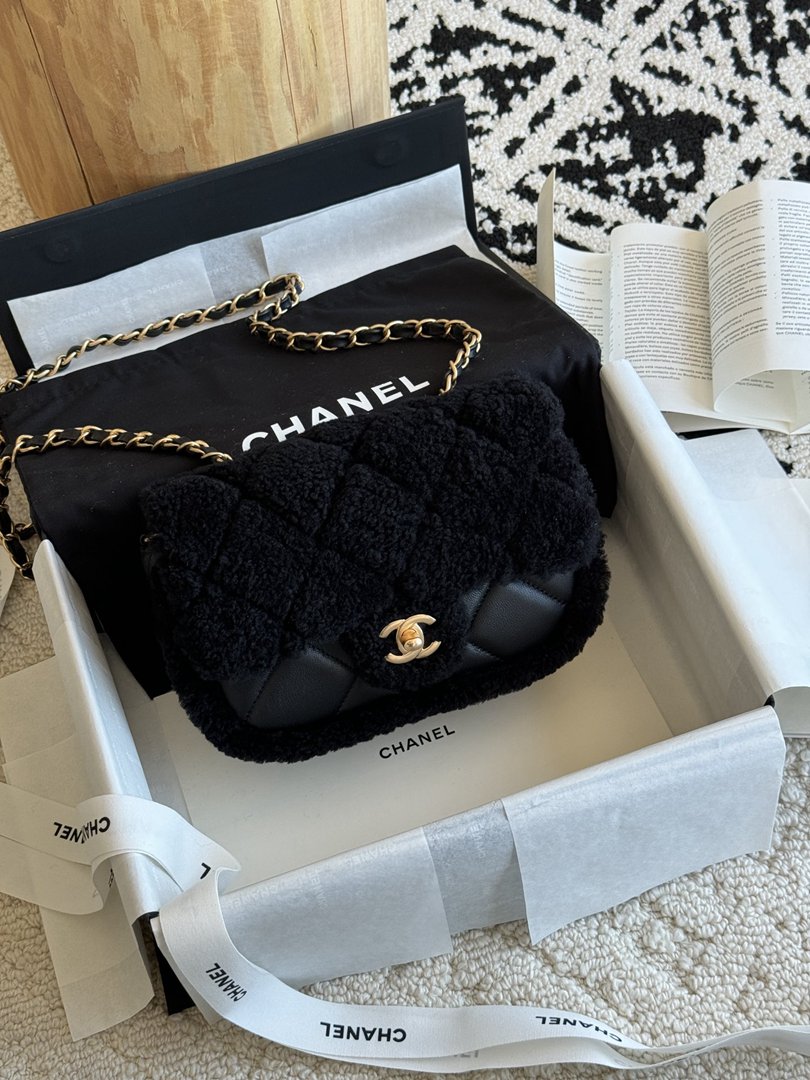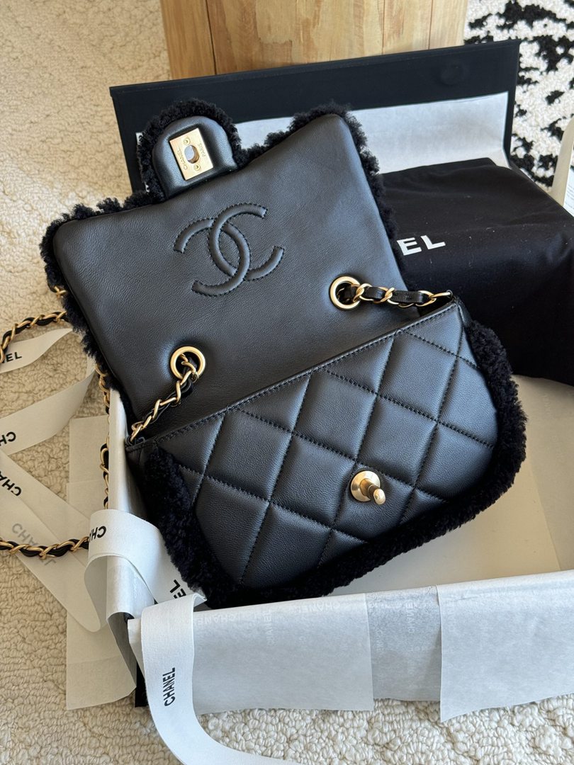 chanel 24k cf black Teddy Bear Shearling copper hardware small