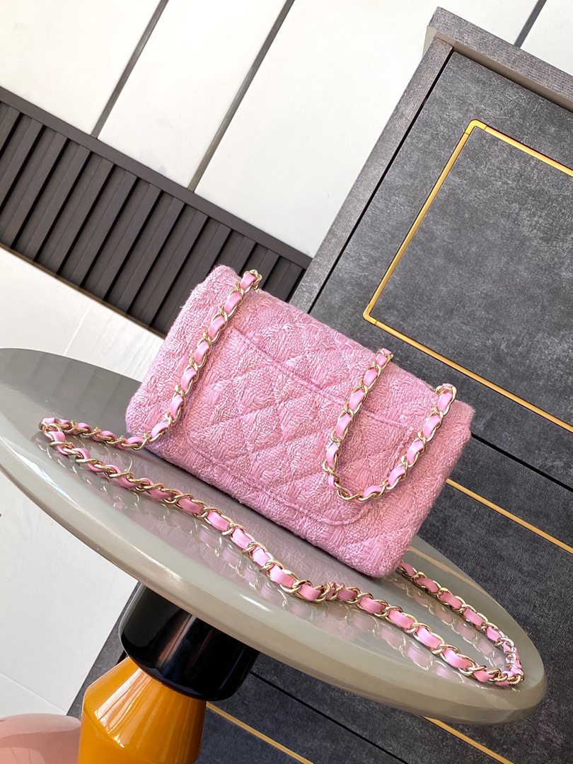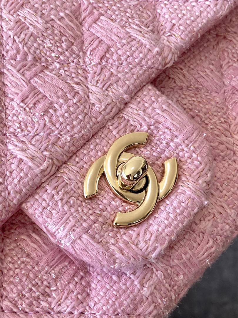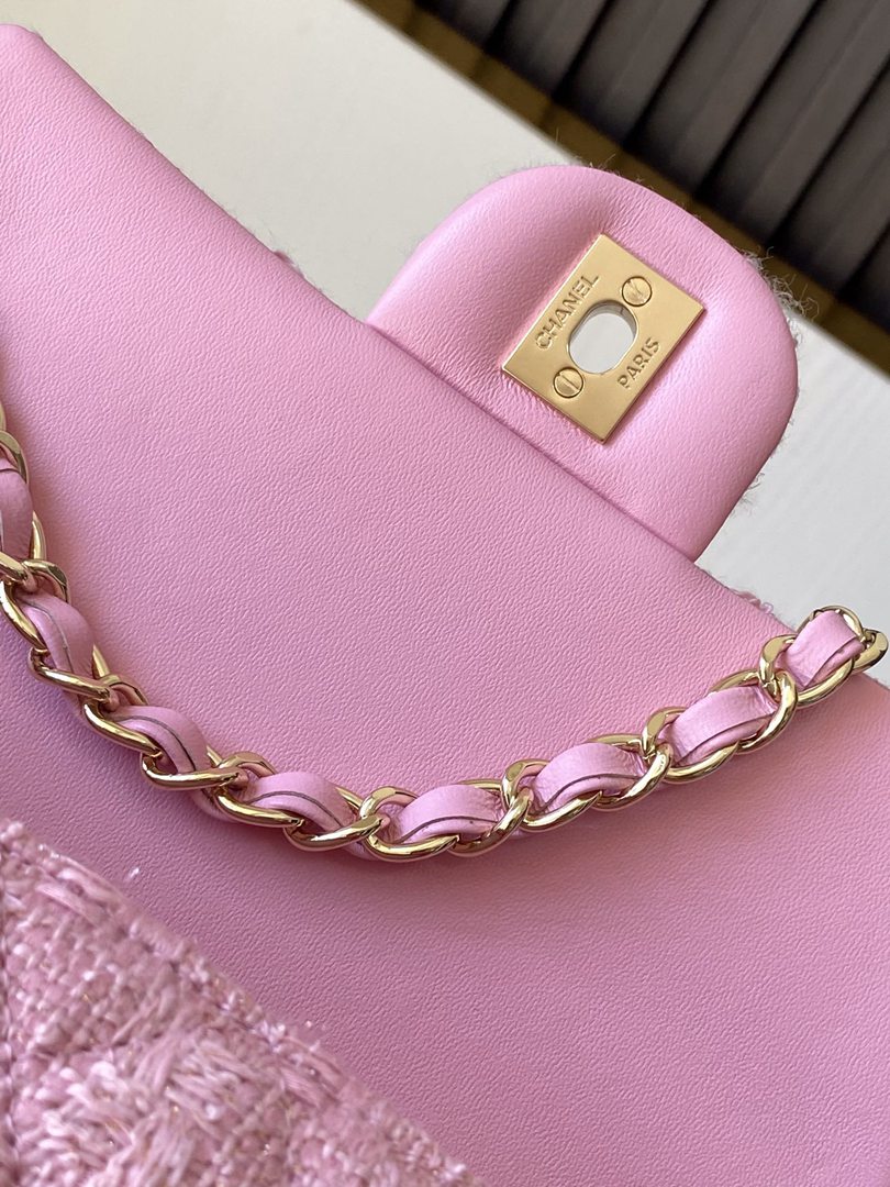 chanel 24k cf pink tweed gold hardware