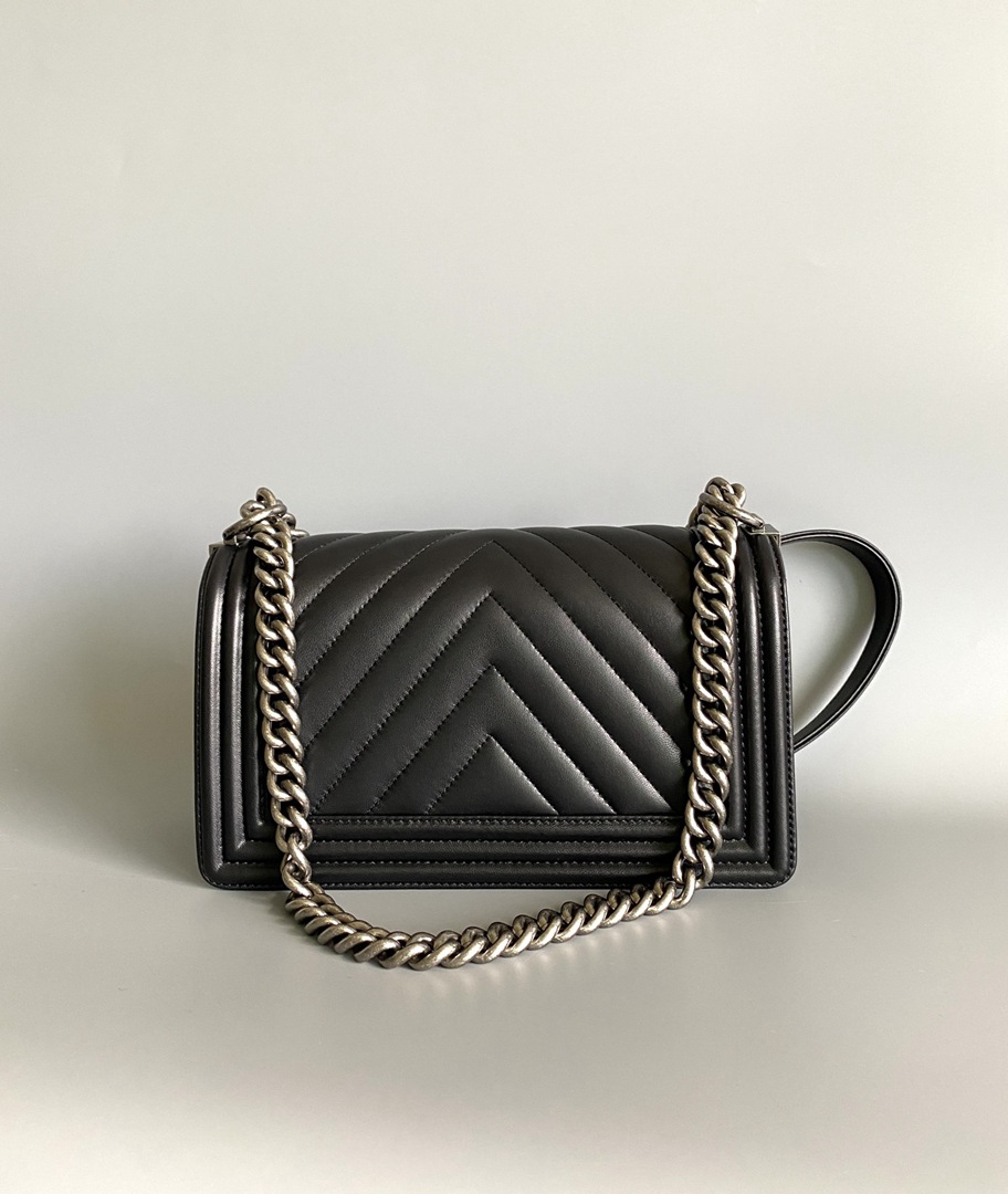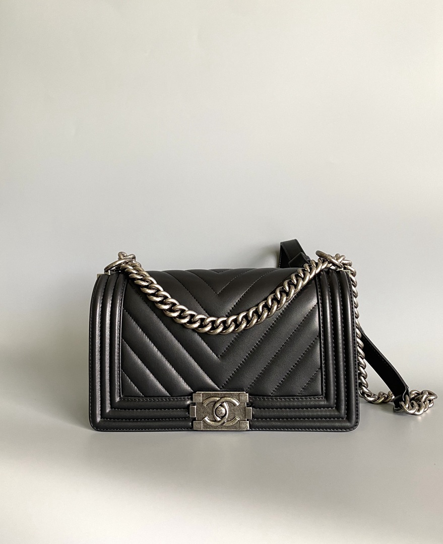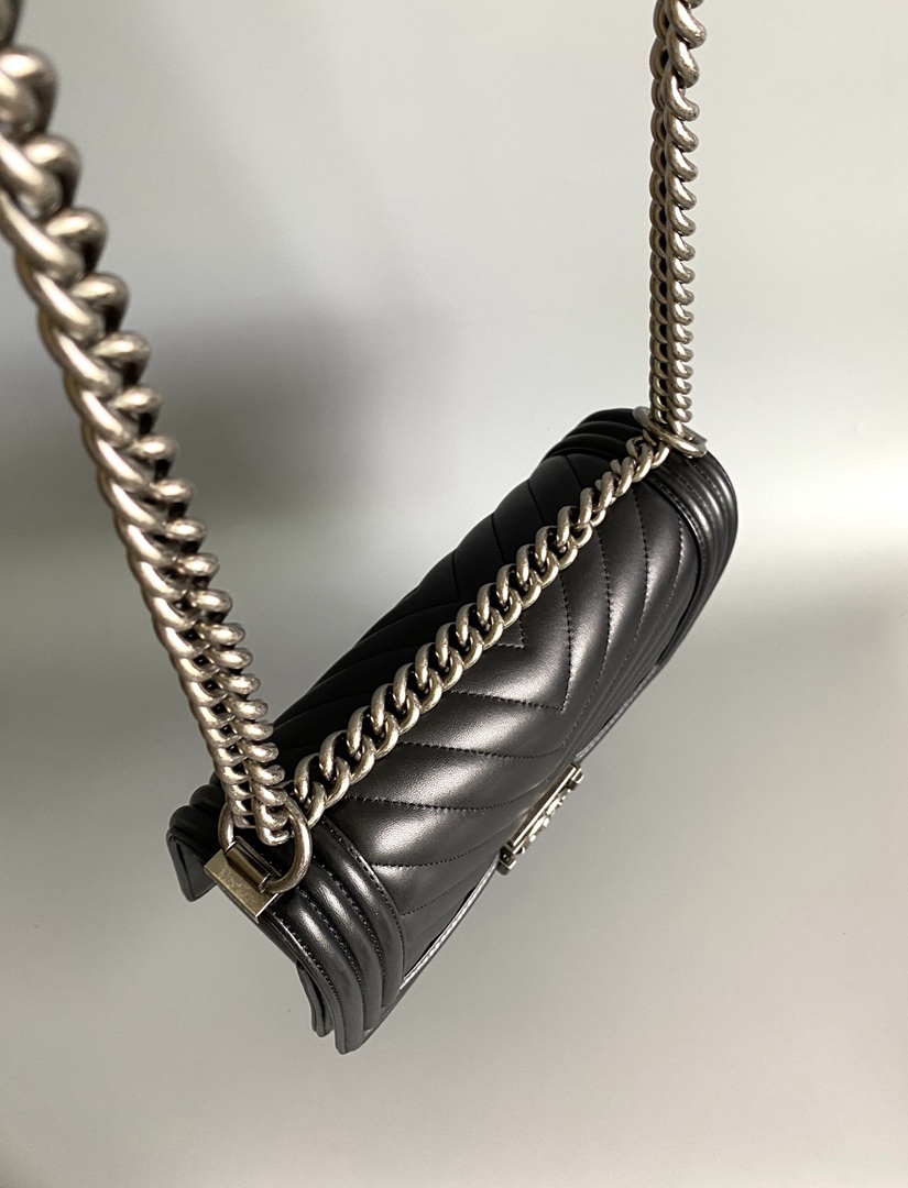 chanel leboy black Caviar Chevron Quilted sliver medium
